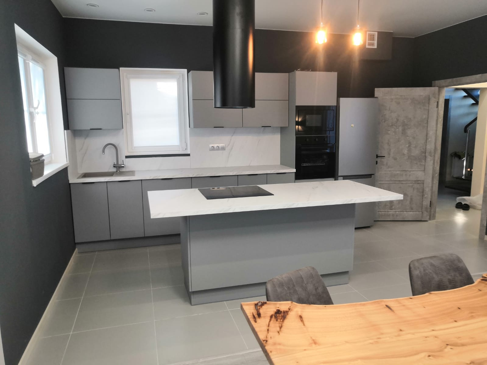 Внутренняя отделка выполнена с применением качественных современных материалов и оборудования. Дом тёплый , просторный, высокие окна пропускают много света. На первом этаже большая гостиная с кухней, прихожая, холл, санузел, баня, техническое помещение.