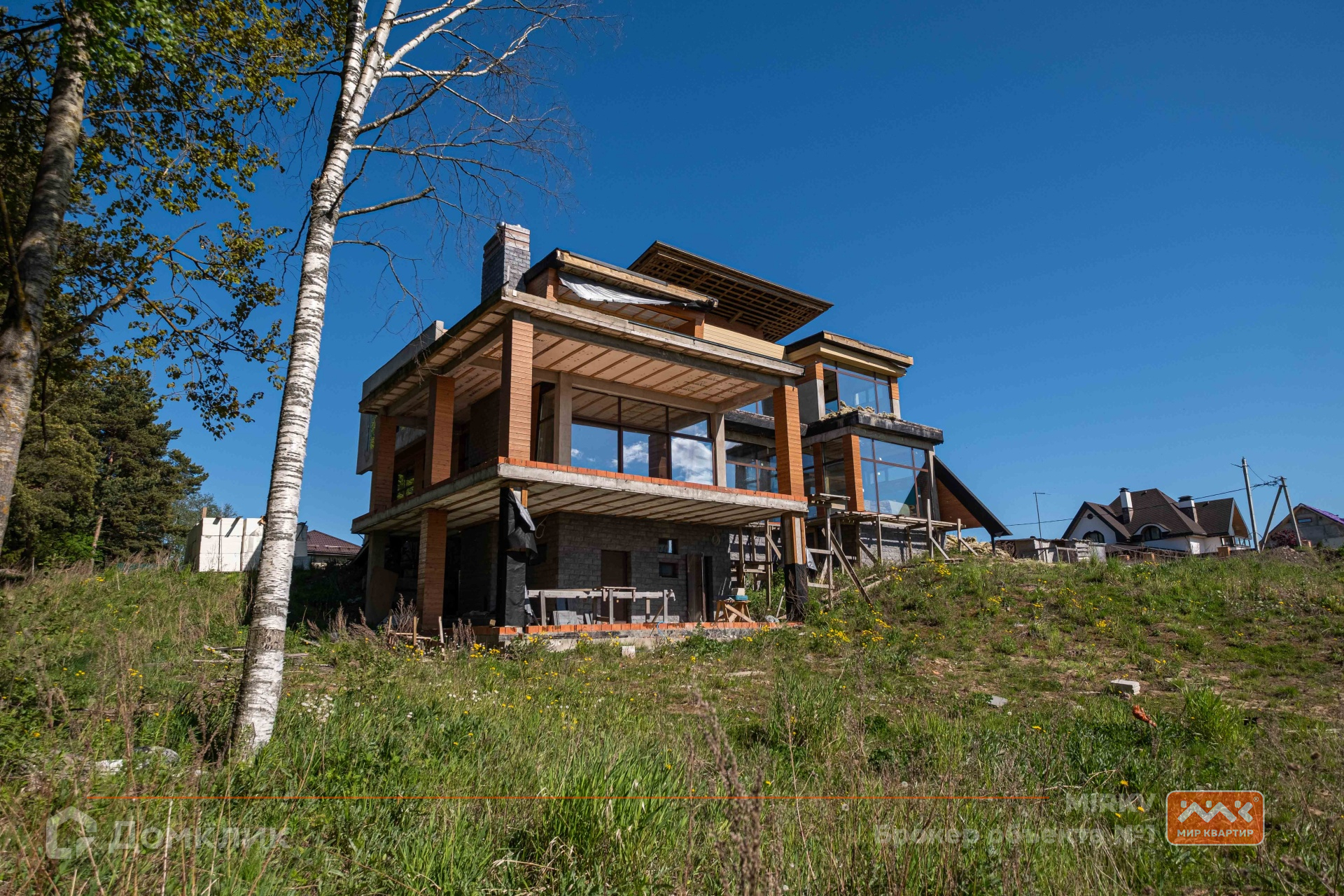 Арт. 3350610 Дамы и господа Вам предлагается уникальный железобетонный дом, выполненный в оригинальном дизайнерском стиле площадью 665 м2. Крыша в виде паруса, придает воздушность дому и препятствует скоплению снега в зимнее время. Уникальное местоположение в сосновом бору в непосредственной близости с Коркинским озером, позволяет в любое время насладиться красотой природы. Цокольный этаж это место, где можно отдохнуть и расслабиться в компании друзей, там расположены изюминки дома; дизайнерский хамам с эффектом звездного неба, бассейн с гидромассажем, бильярдная, винотека и отдельная комната - домашний кинотеатр. Здесь же находится сердце дома двухконтурная газовая котельная легендарного немецкого производителя Buderus, а также ароматизатор для хамама, водоснабжение дома с фильтрами и насосами для дома/бассейна. По полу дома прокинуты трубы для подогрева полов. Во всем доме установлены алюминиевые панорамные окна системы Lift&Slide, которые можно сдвинуть в одно и насладиться свежим воздухом. Благодаря данному решению, а также что дом находится на возвышенности Вам всегда открываются потрясающие виды на красочные закаты и рассветы. На первом этаже дома расположены; входной гардероб, хозблок с с/у, кухня- столовая, гостиная с холлом, гостевая спальня, ванная комната. Гостиная с большими панорамными окнами и выходом на террасу позволяет не только насладиться теплом большого двухстороннего голландского камина Roodline, но и пожарить шашлыки в обустроенной зоне барбекю. Второй этаж дома это зона уединения, где расположены две спальни с выходом на террасу, мастер - спальня со своей гардеробной, ванной комнатой, также здесь расположен кабинет, зимний сад/кальянная и еще одна ванная комната. Дом имеет готовность 70% (предчистовая отделка), что позволит Вам реализовать свои идеи в оформлении интерьера дома. А большой участок 32 сотки(по документам), в реальности свыше 60 соток, продумать свои ландшафтные решения. Не упустите возможность жить в уникальной локации в экологически чистом районе, недалеко от города.