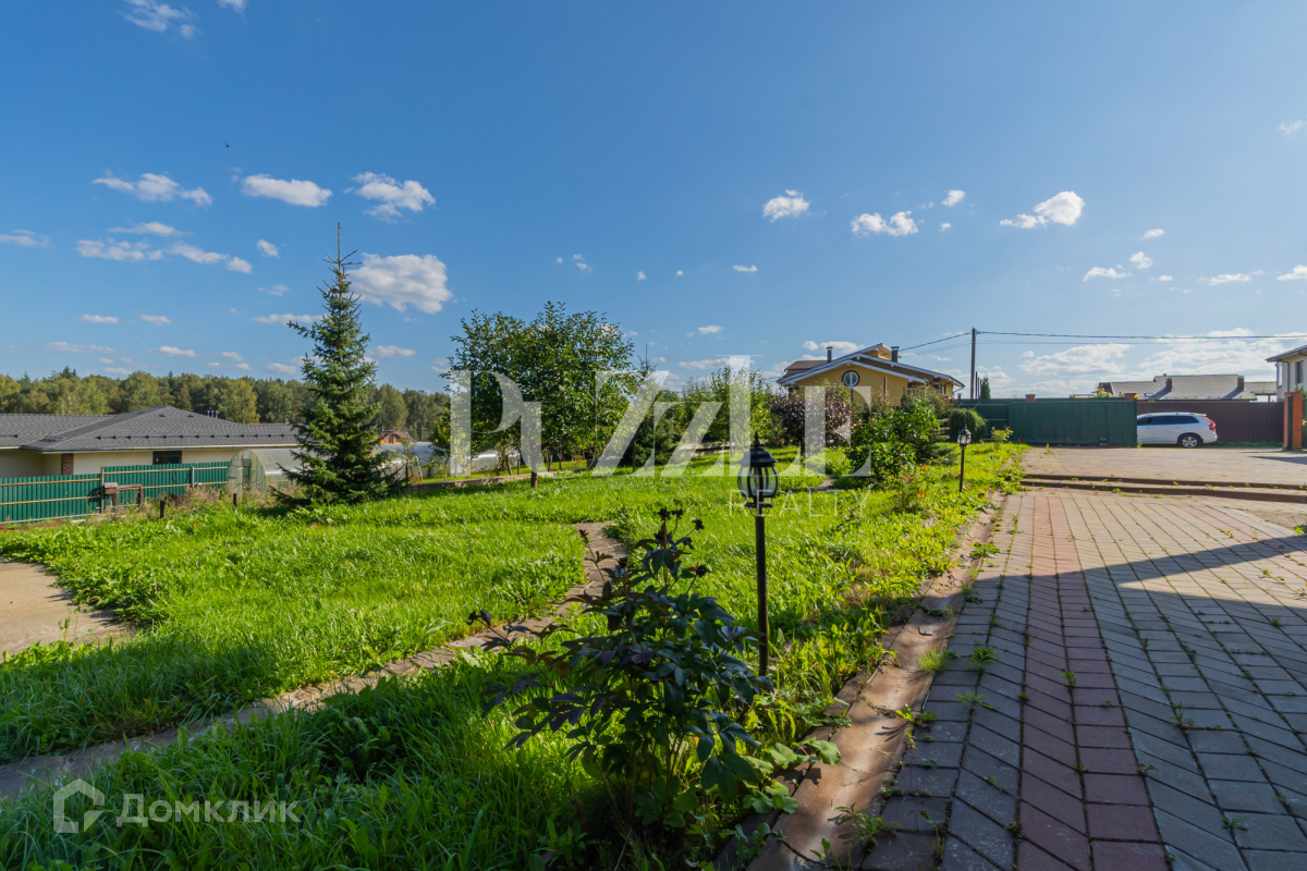 На участке разбит сад с многочисленными фруктовыми деревьями. Есть теплица. Территория участка огорожена забором. Установлены откатные ворота.