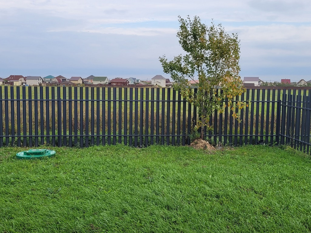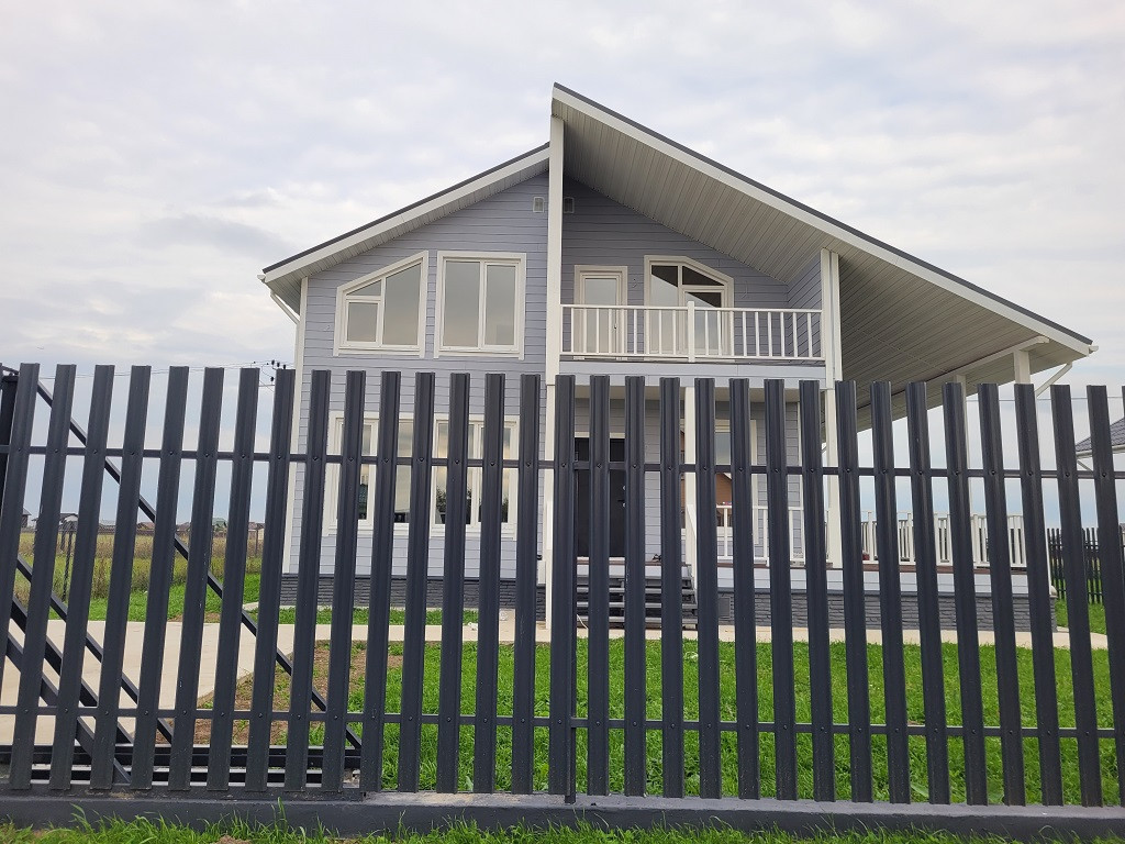 Территория домовладения огорожена забором с откатными воротами.