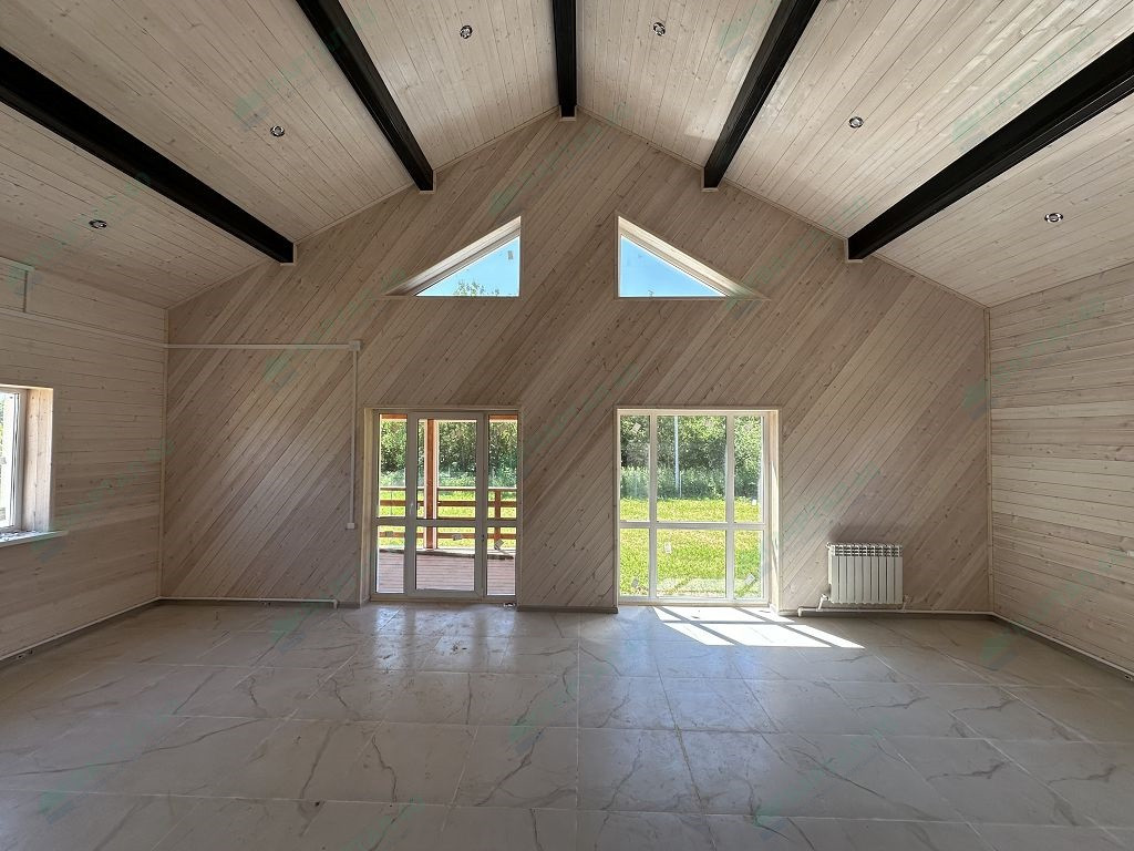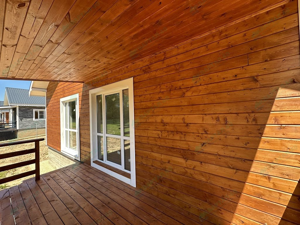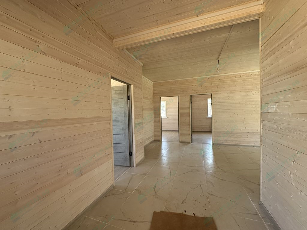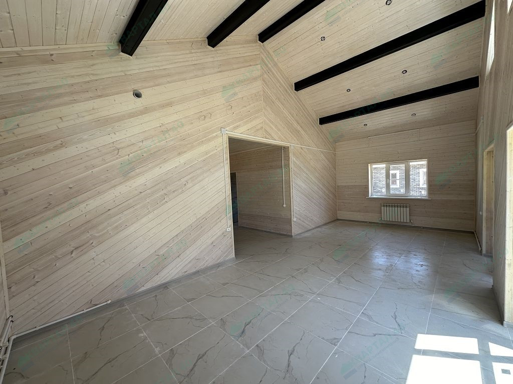 Материал стен – газоблоки 250 мм. с наружным утеплением, наружная и внутренняя отделка – покрашенная имитация бруса;