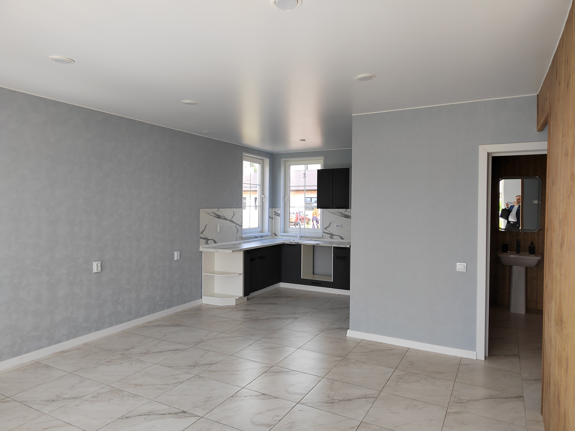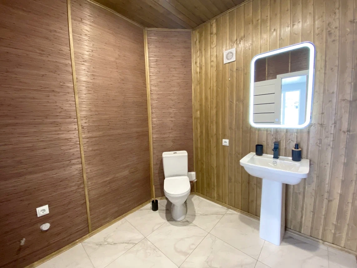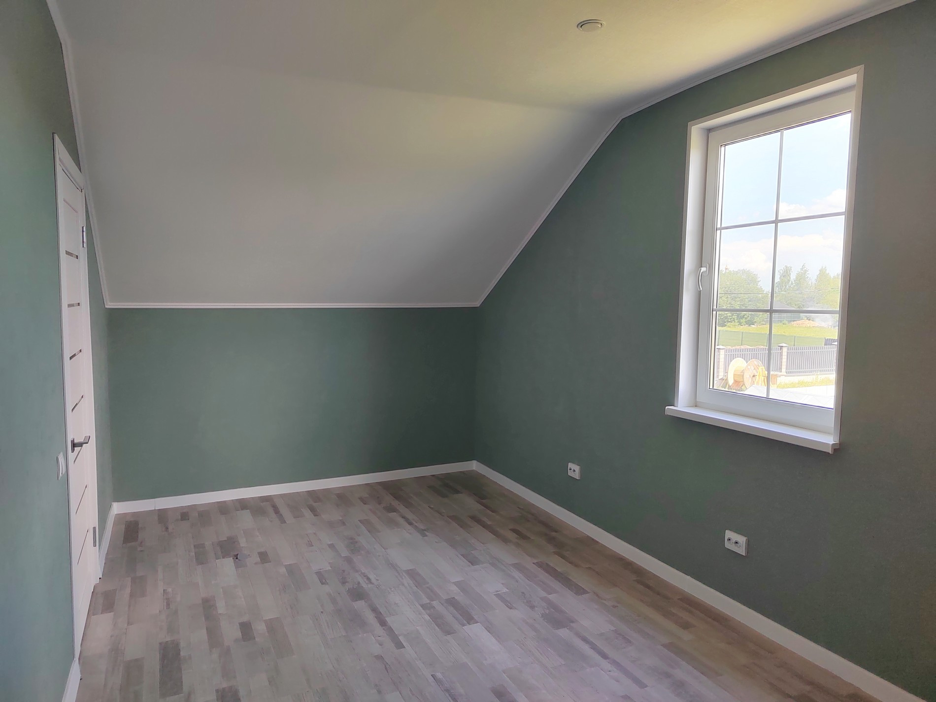 - надежный каркас стен, гипсовая обшивка внутри, с наружи деревянный фасад, окрашен высококачественными красками.