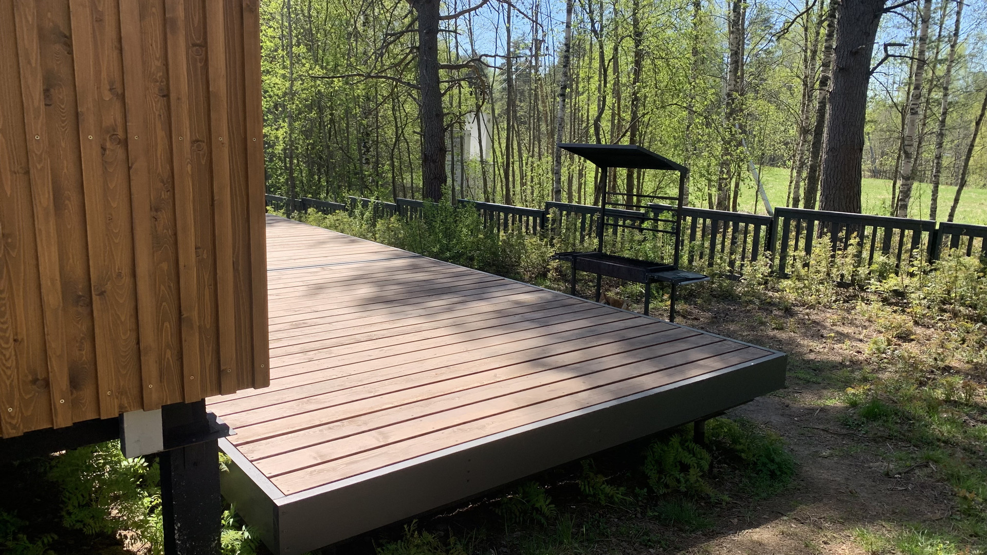 Участок благоустроен, имеется парковка для автомобиля, место для барбекю.