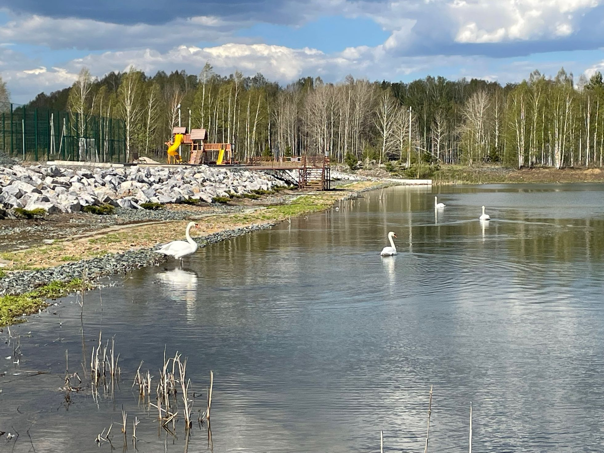 Коттеджный поселок Князевское - прекрасная заповедная зона, с асфальтированной дорогой, теннисным кортом и прудом с белыми лебедями. Дикие косули частые гости в этом районе