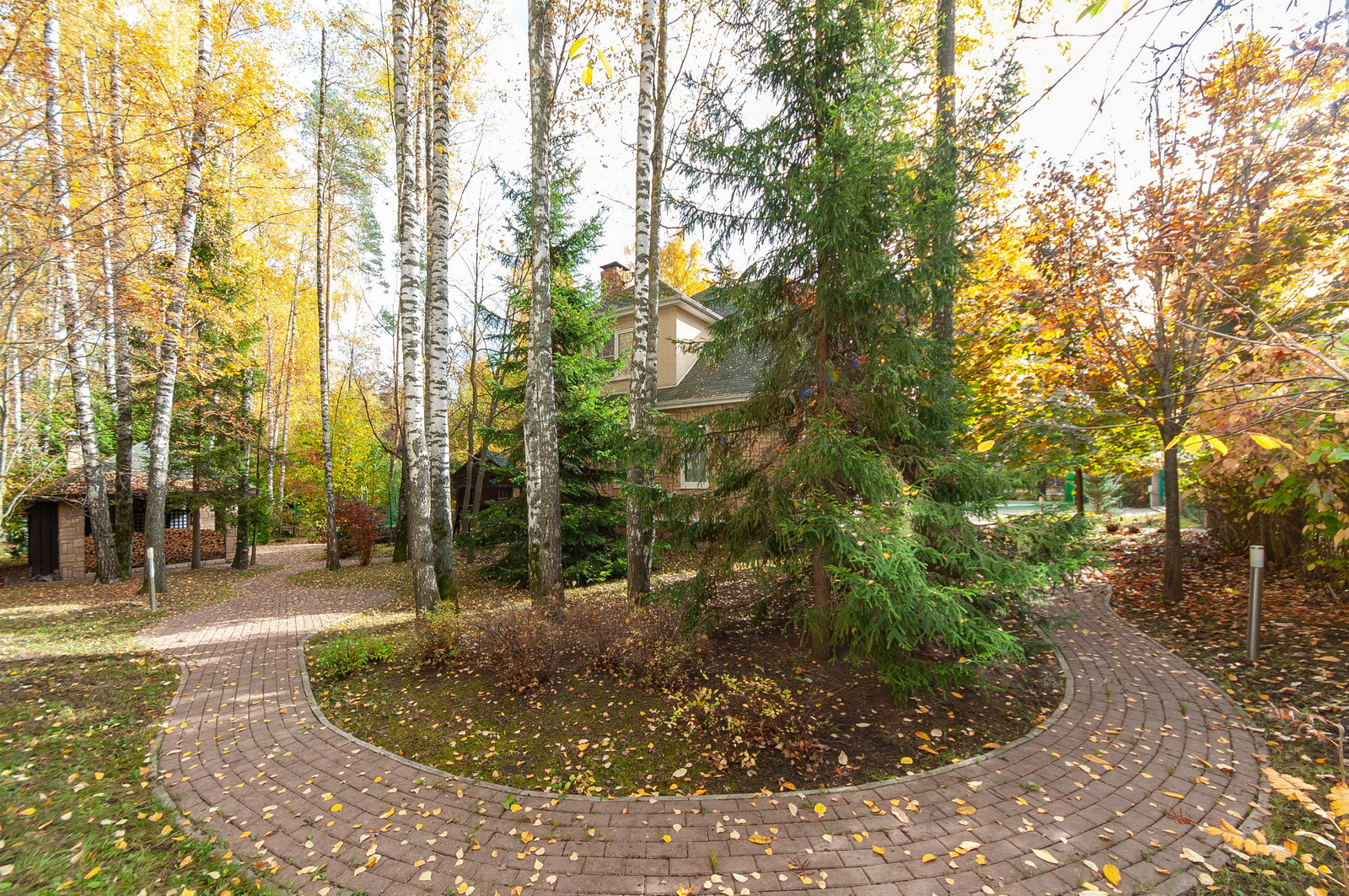 На лесном участке с ландшафтным дизайном, расположен: