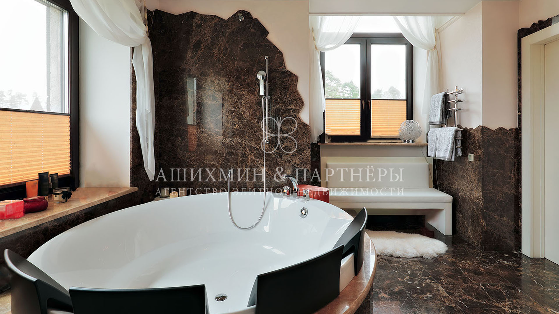 Все комнаты меблированы от итальянского бренда Turri, отделка дома выполнена с использованием натурального дерева и мрамора.