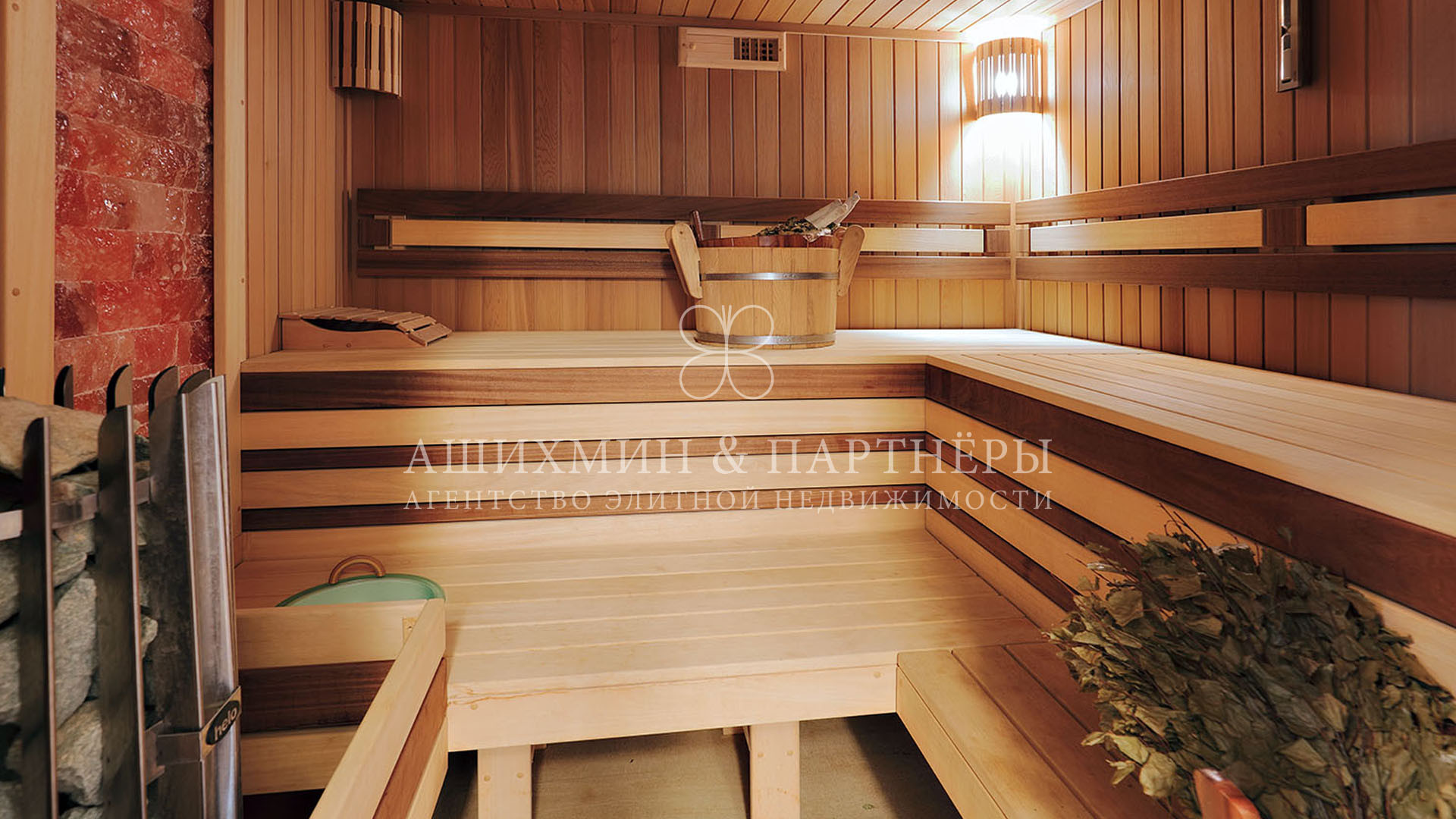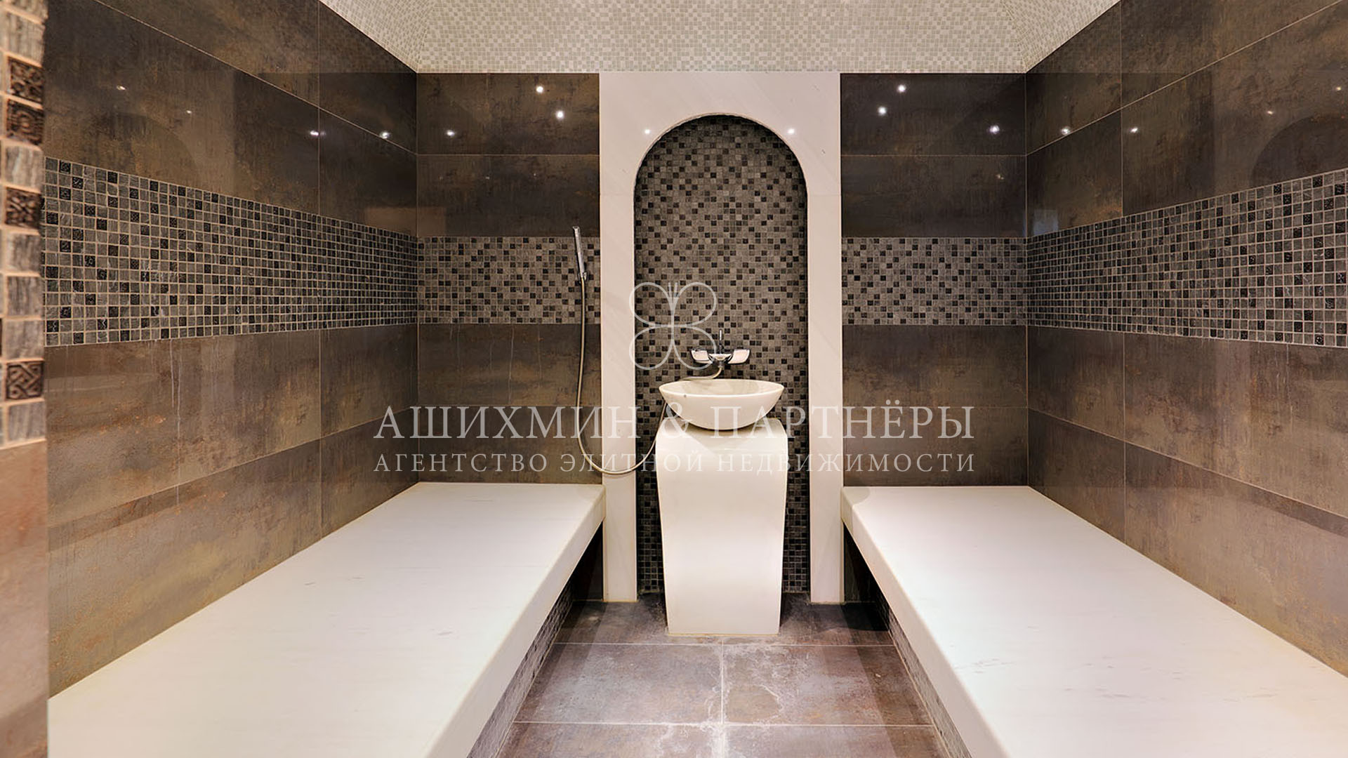 Гостевой дом площадью 409,5 м2 соединен с основным домом теплым коридором. На первом этаже: бассейн с джакузи, хамам, финская сауна, лаундж-зона и ванная комната. На втором этаже: две спальни с ванными комнатами и кухня.