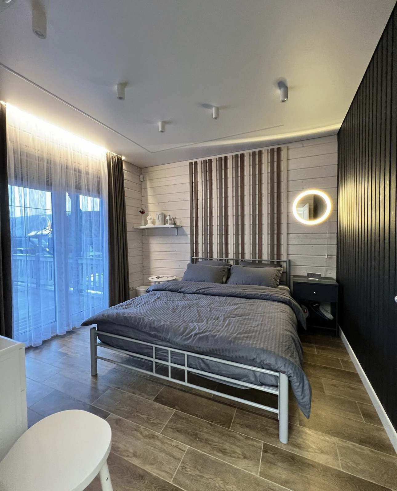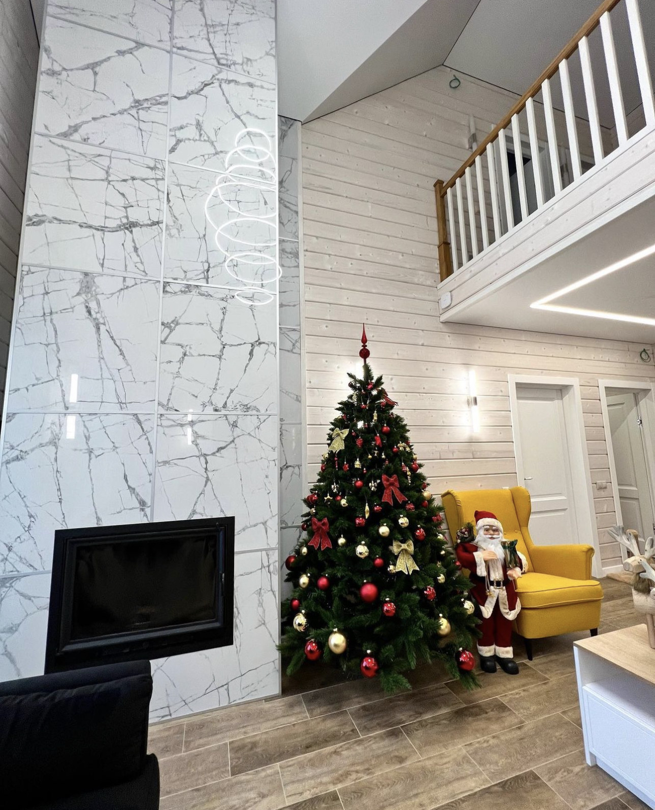 На втором этаже разместились зона отдыха, три спальни, санузел с роскошной ванной и большая гардеробная.
