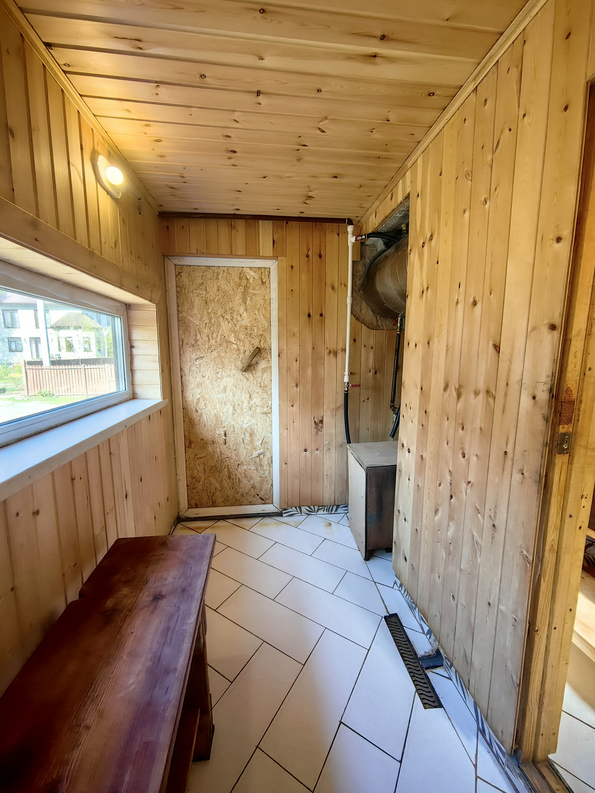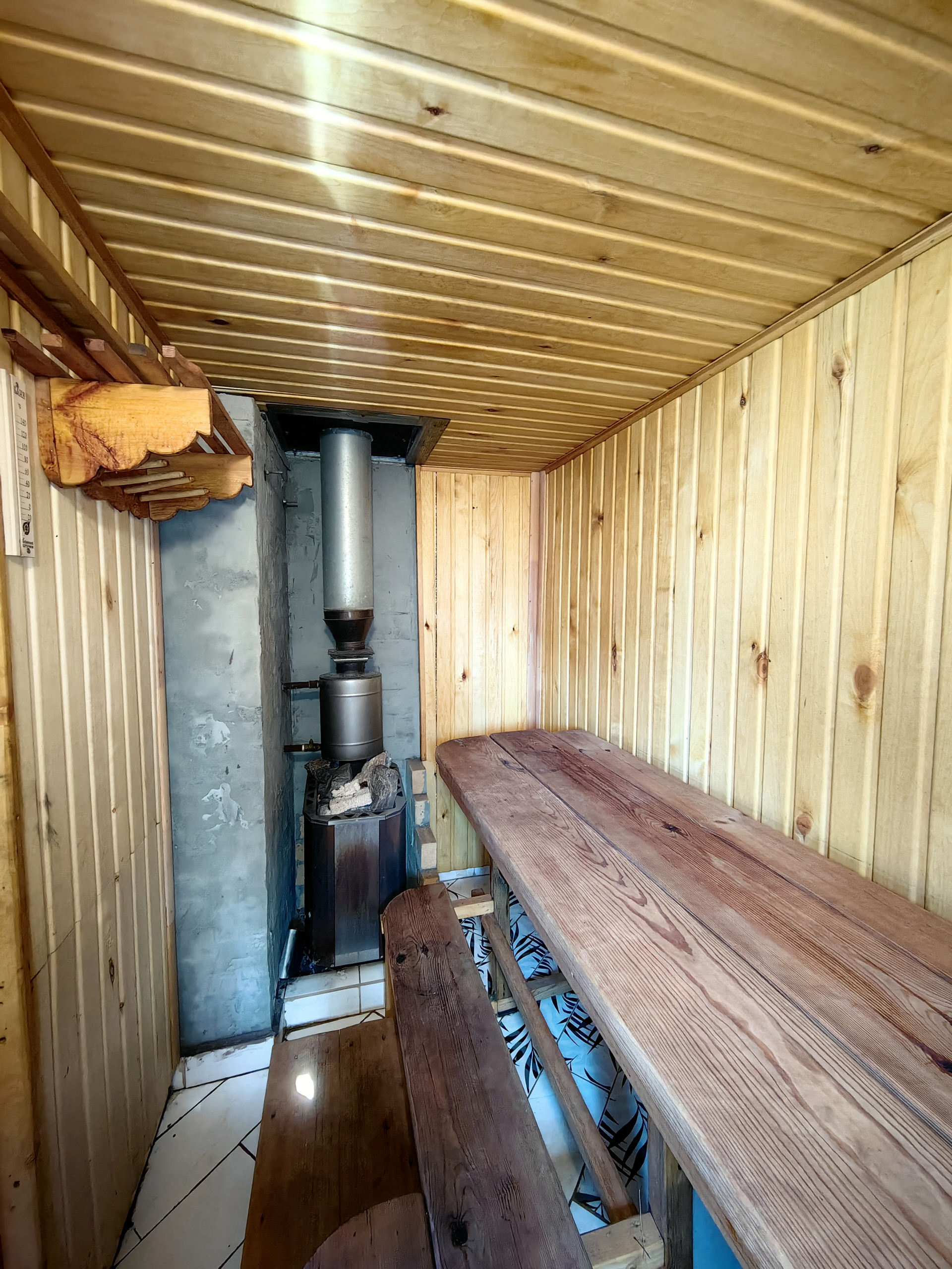 Рядом с домом баня с верандой, душем и зоной отдыха. Полы в бане теплые, электрические.