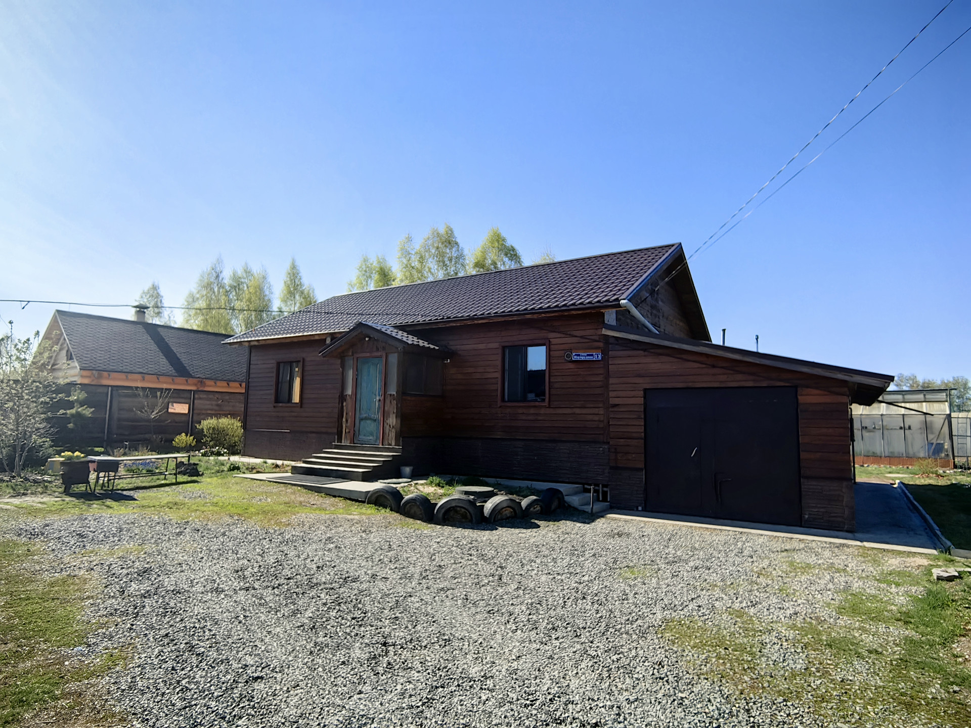 На участке 15 соток правильной формы расположена теплица для выращивания овощей. Много красивых декоративных деревьев, кустарников и цветов. Так же имеются посадки многолетних культур.