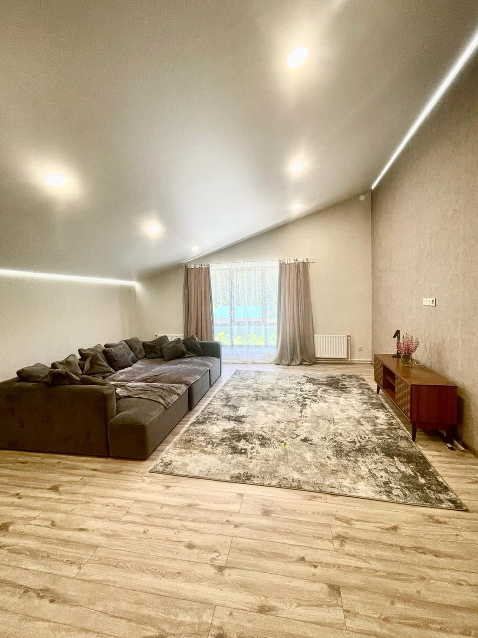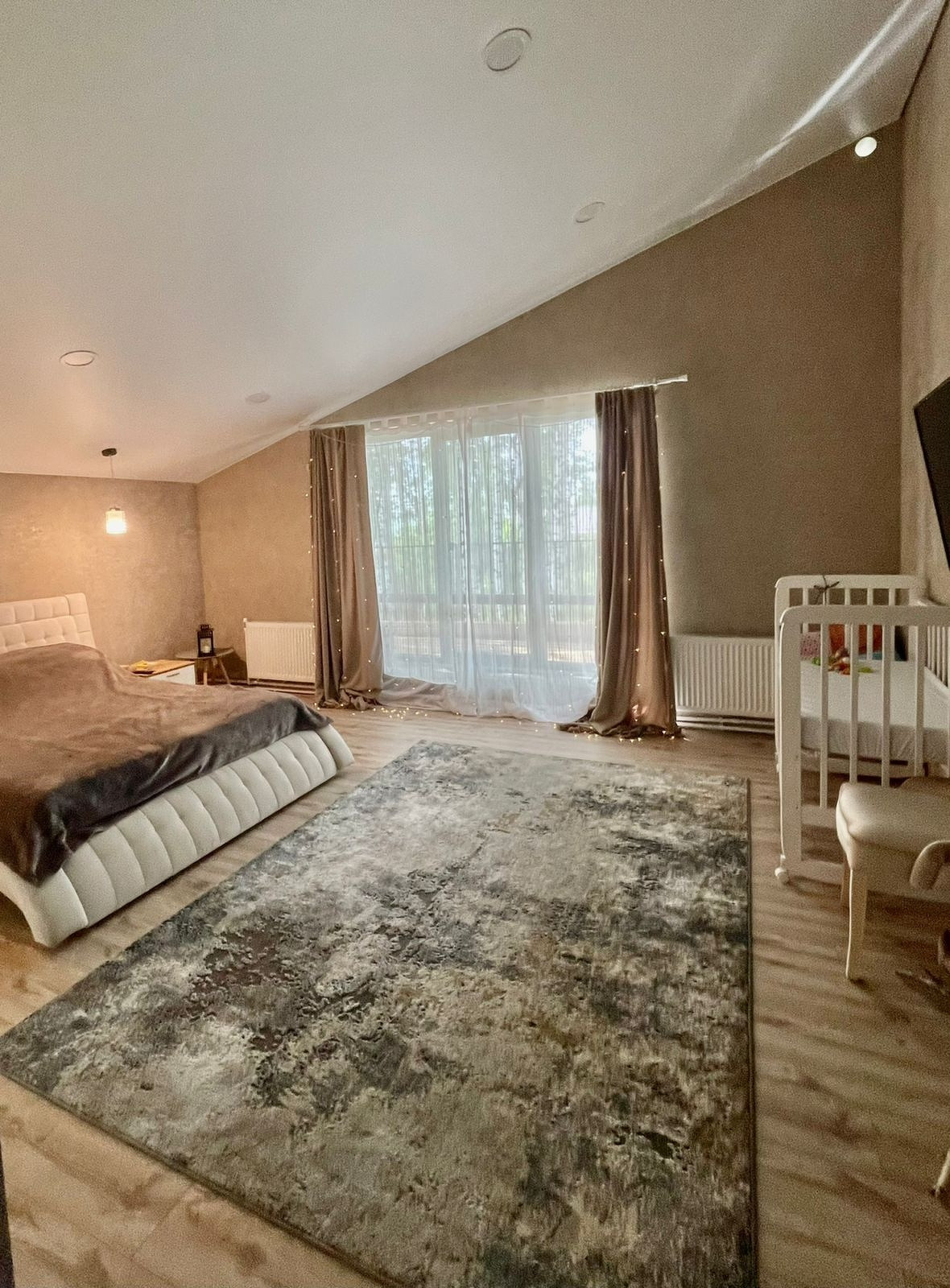 На 2 этаже: гостиная 38 кв.м , 3 спальни по 26 кв.м и санузел с ванной 4 кв.м. Высота потолков 3,2 метра.