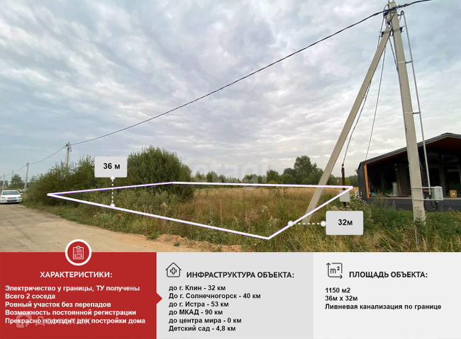 Посёлок динамично застраивается, некоторые соседи живут круглый год, некоторые только весенне-летний сезон. Подъездная дорога к поселку асфальтирована, далее переходит в отсыпанную щебнем. Подъезд к участку обеспечен круглый год. Подведено электроснабжение к границам участка, сделана ливневка вдоль дорог.