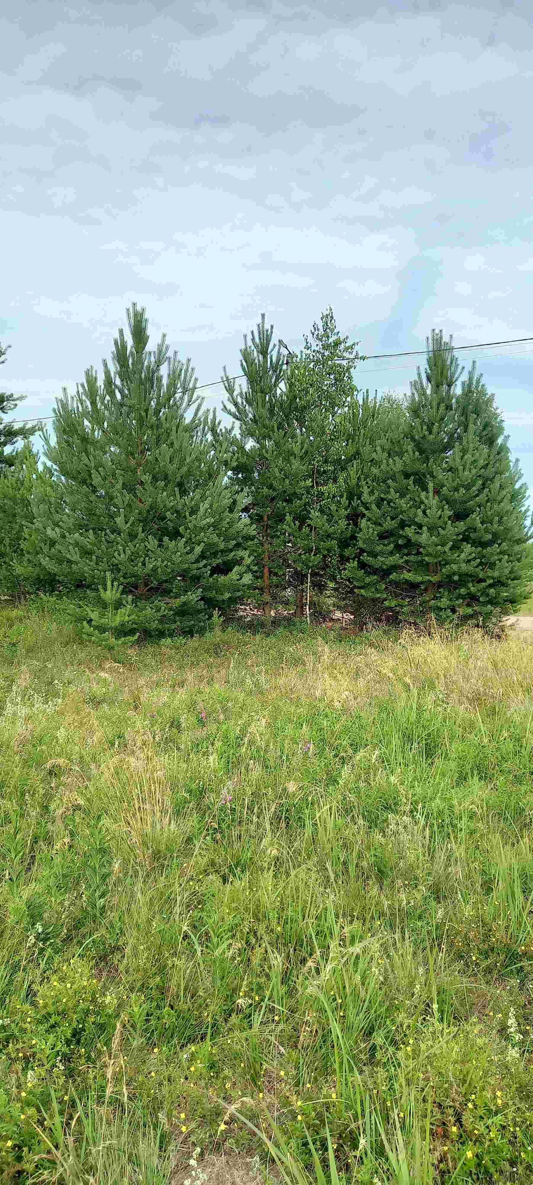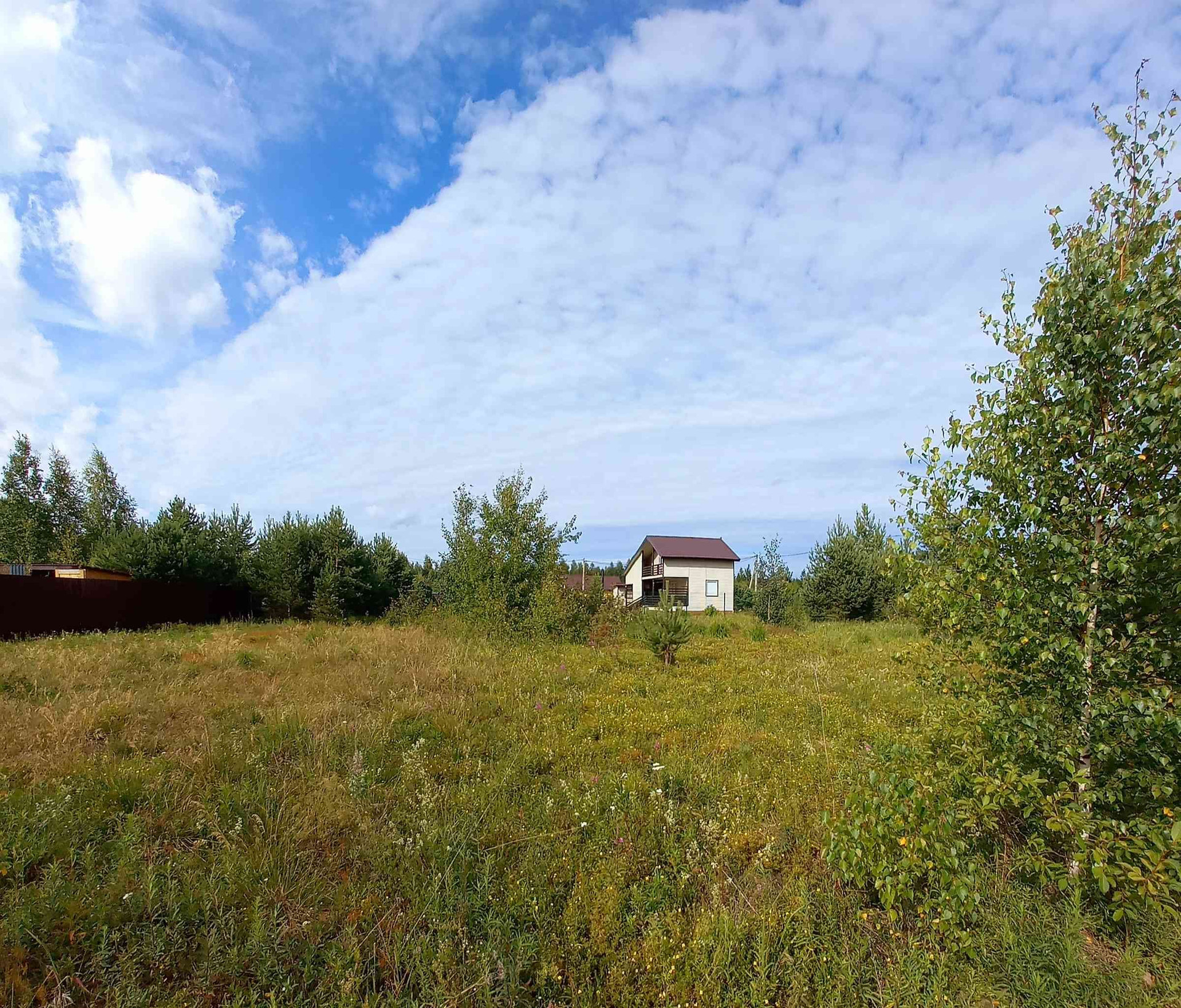 Участок угловой, правильной формы, сделаны дренажные канавы. На участке по границе с дорогой посажены роскошные хвойники.