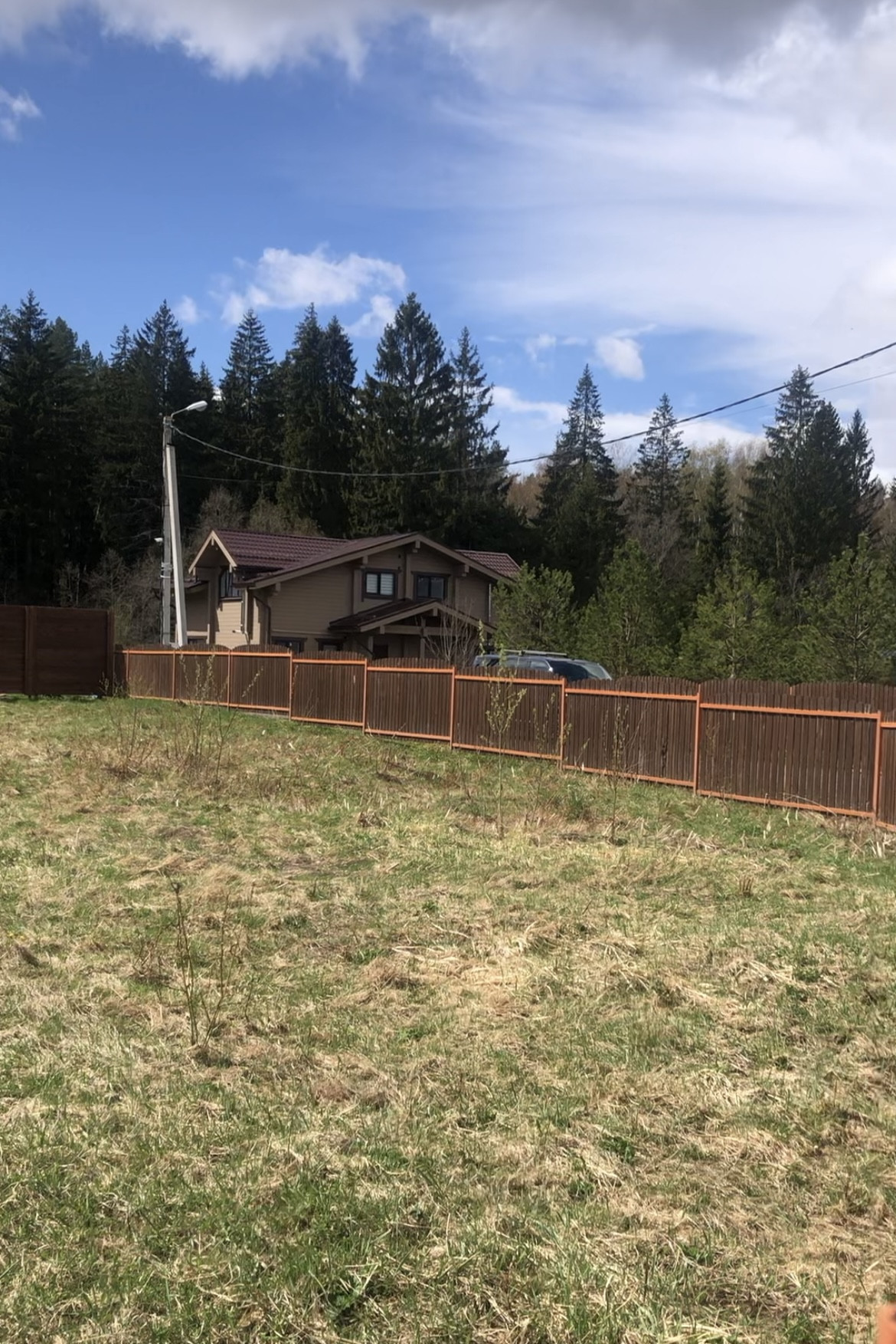 Продается высокий сухой участок 13,7 кВ.м., (фактически 15 соток) в квартале Форест второй от леса, угловой, граничащий с одним соседом. Один собственник. Участок огорожен новым деревянным забором со стороны соседнего участка, а с фасадных сторон деревянным штакетником от застройщика в едином стиле.