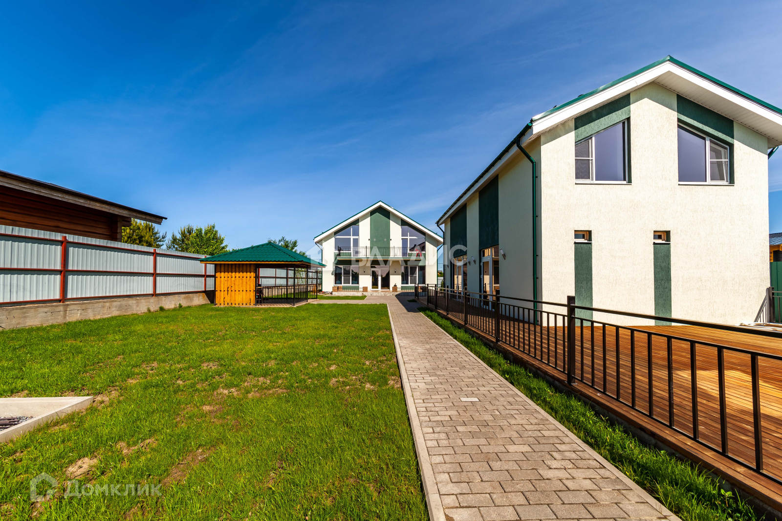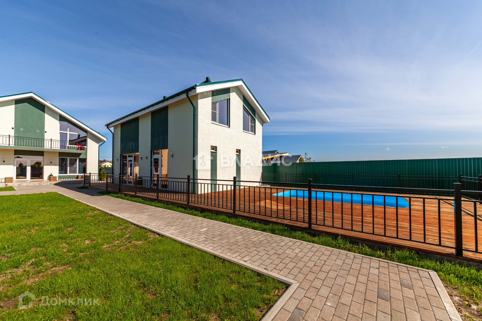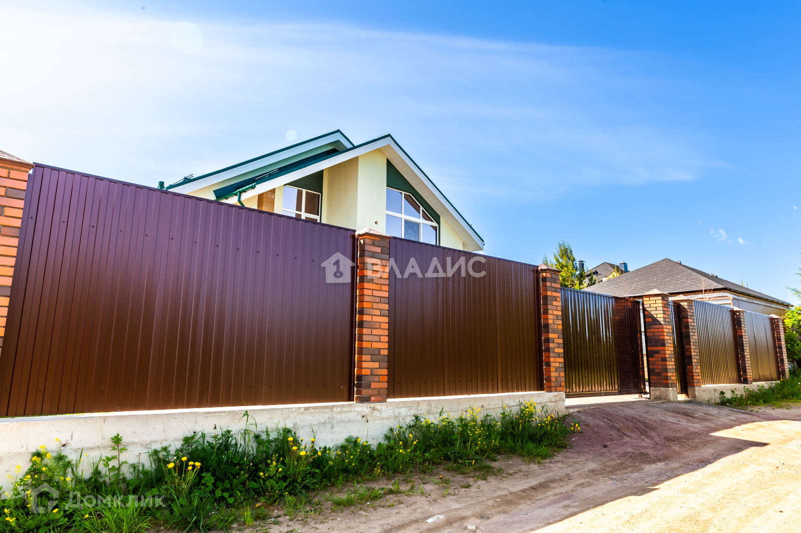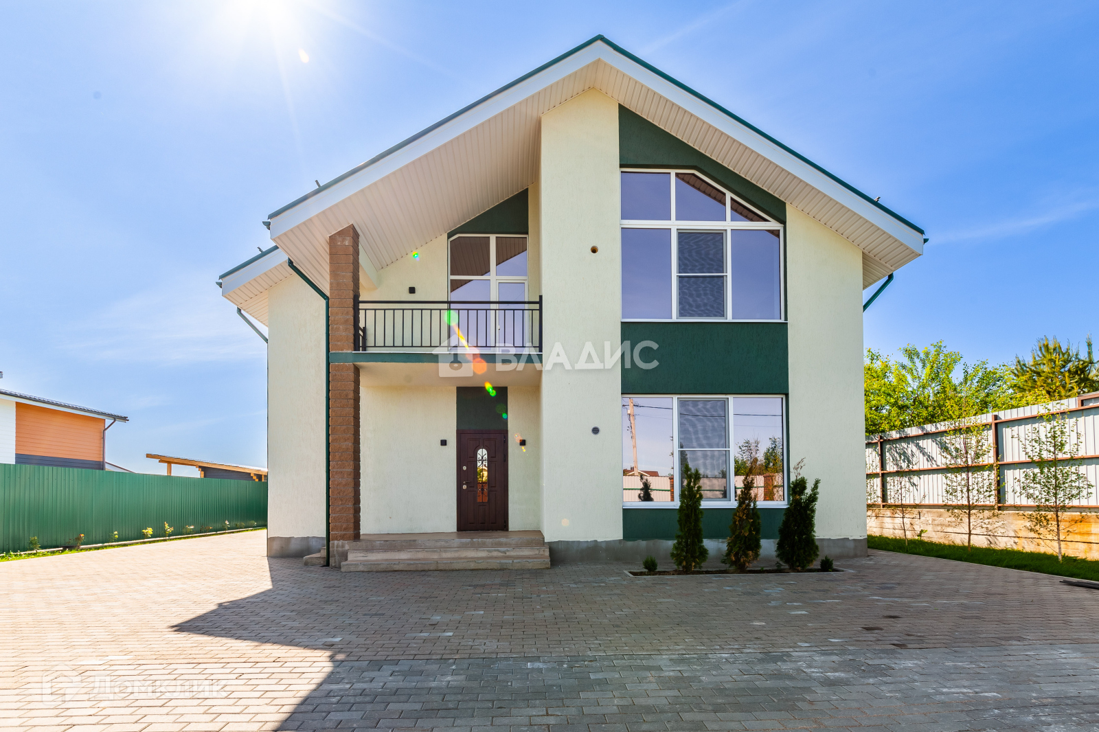 Участок  12 соток, огорожен со всех сторон надежным металлическим забором, дорожки и часть двора вымощены брусчаткой. На территории сделан ландшафтный дизайн.
