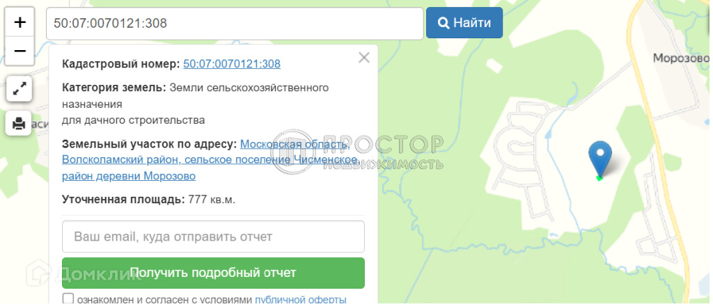 Ровный, правильной формы 7.77 сотки. Номер участка 123, кадастровый номер 50:07:0070121:308