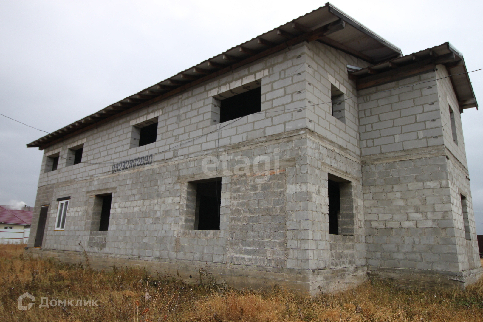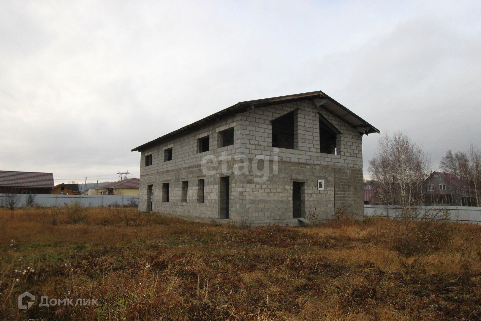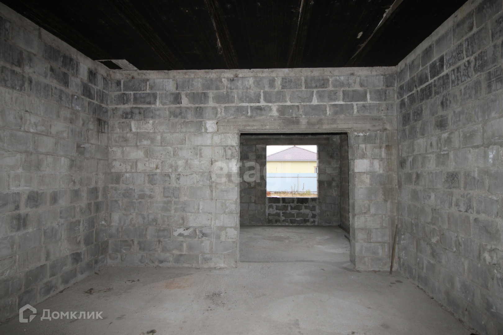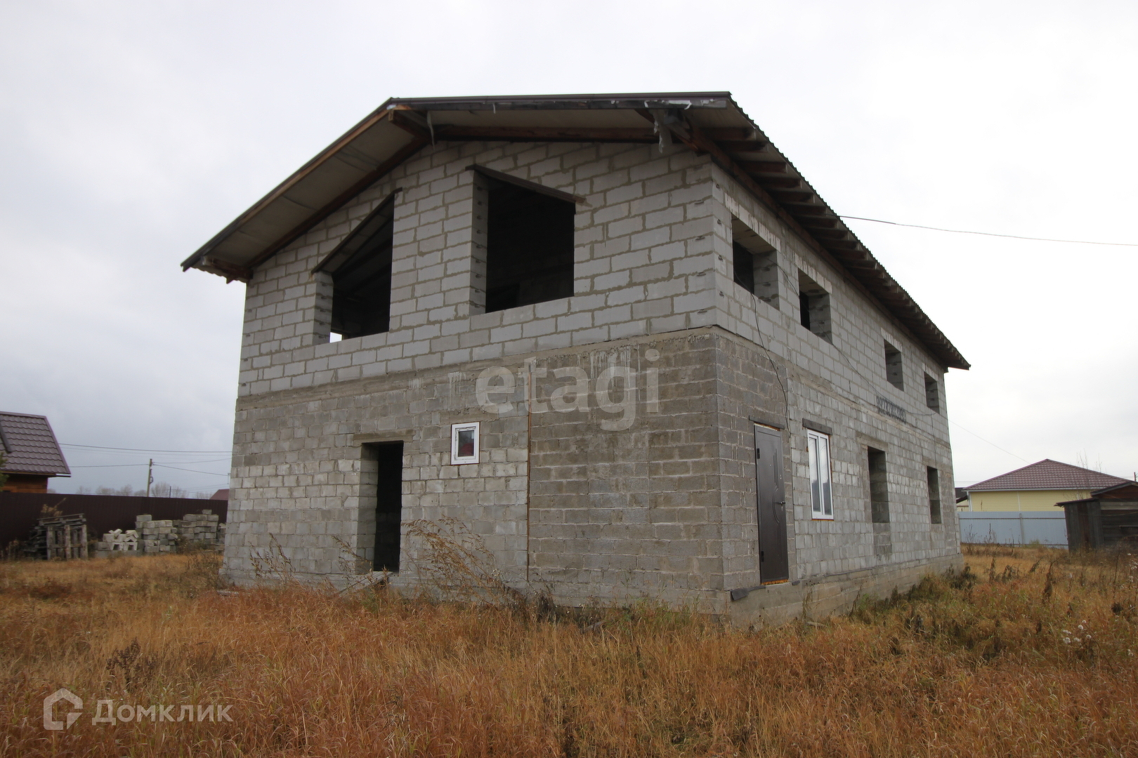 Дом без отделочных работ, окна не установлены.