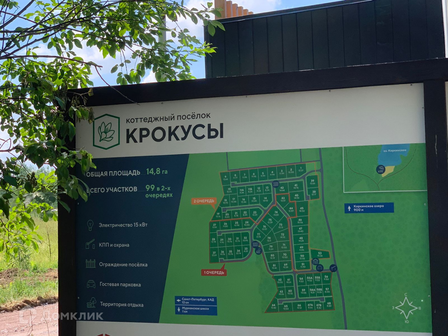 До красивейшего оз. Коркино 7 минут. До г. Санкт-Петербурга 13 км.