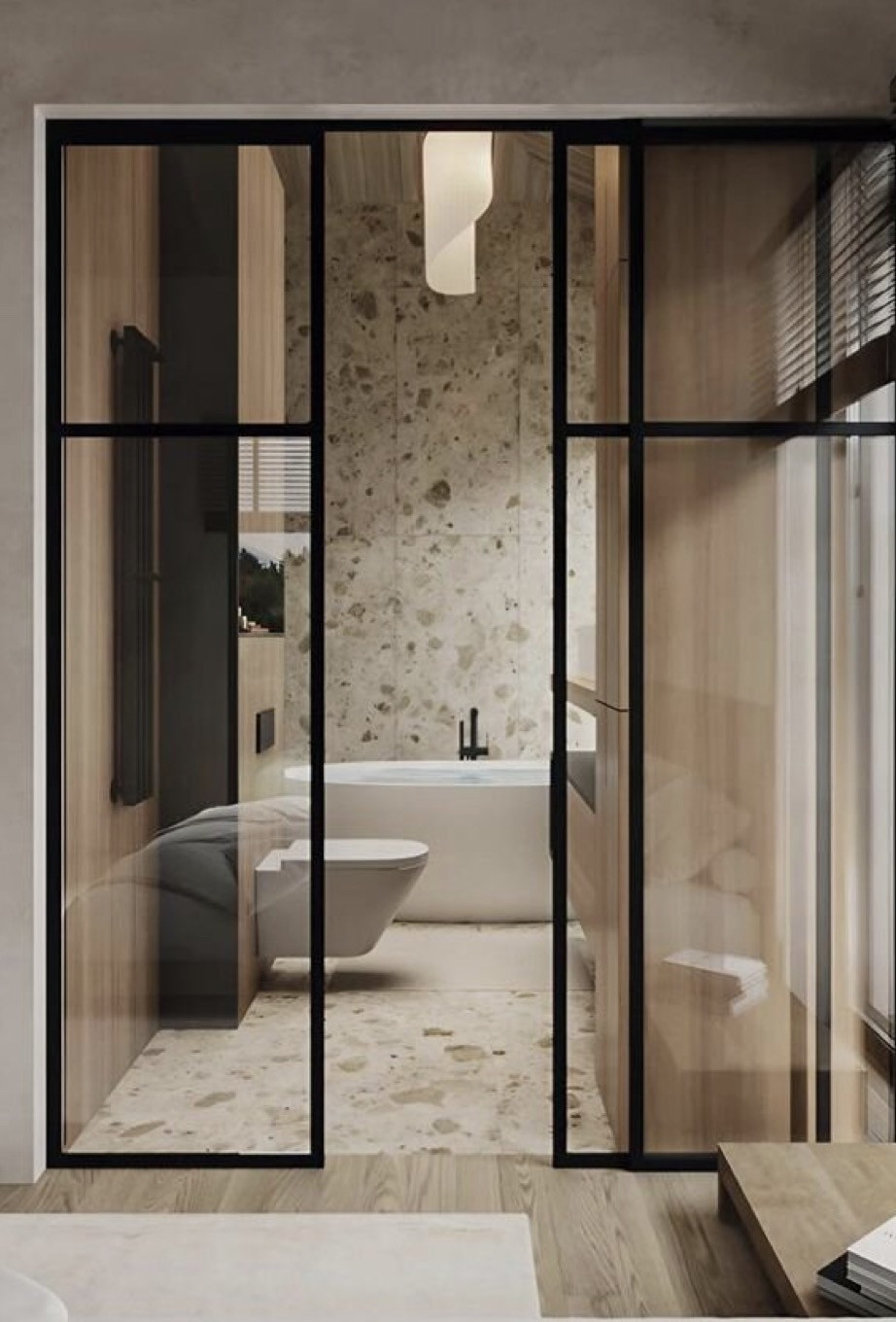 В доме 3 спальни, мастер спальня со своей ванной комнатой и стеклянной перегородкой, большая кухня гостиная 50м2 с большими окнами в пол. Гардеробная, котельная с постирочной и подсобное помещение.
