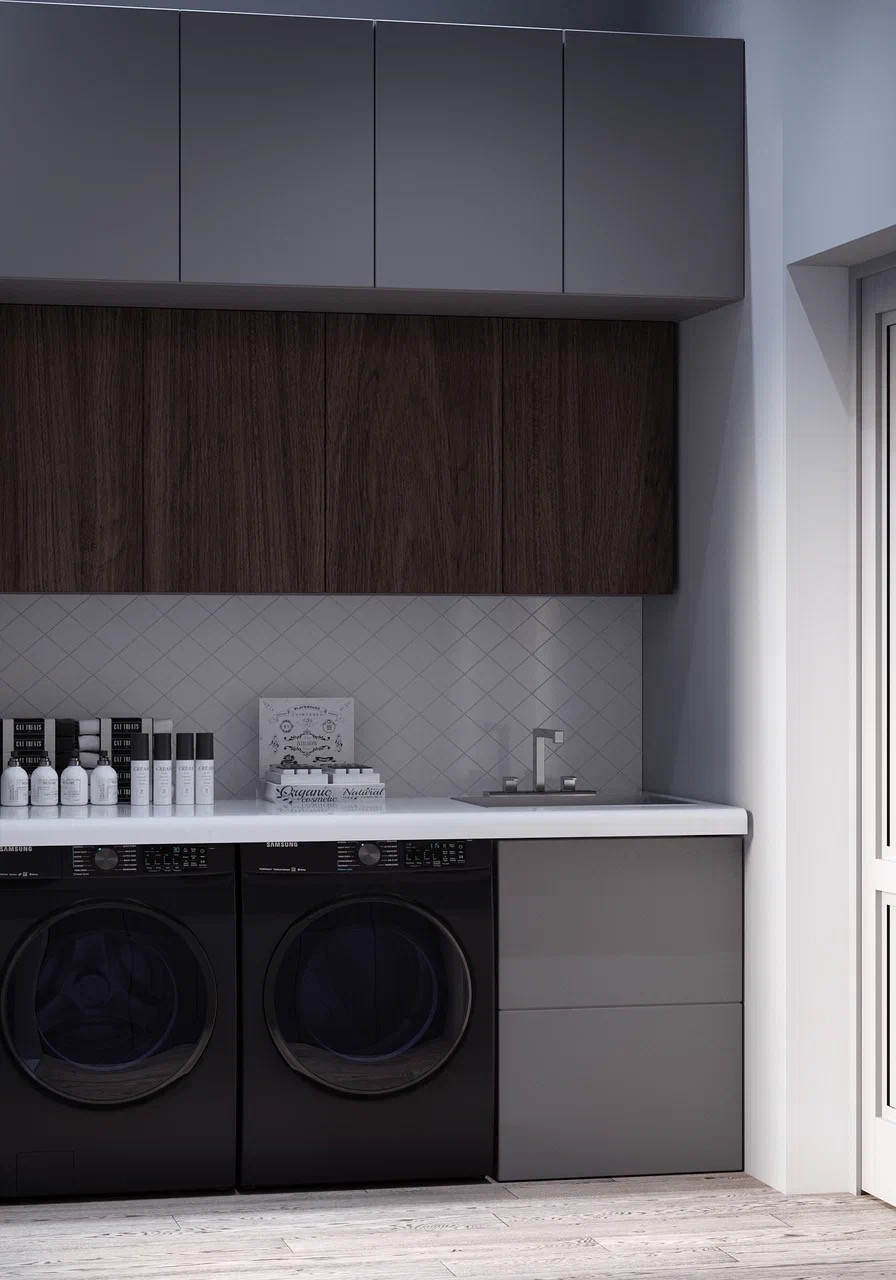 Большая постирочная-котельная, гардеробная при входе.