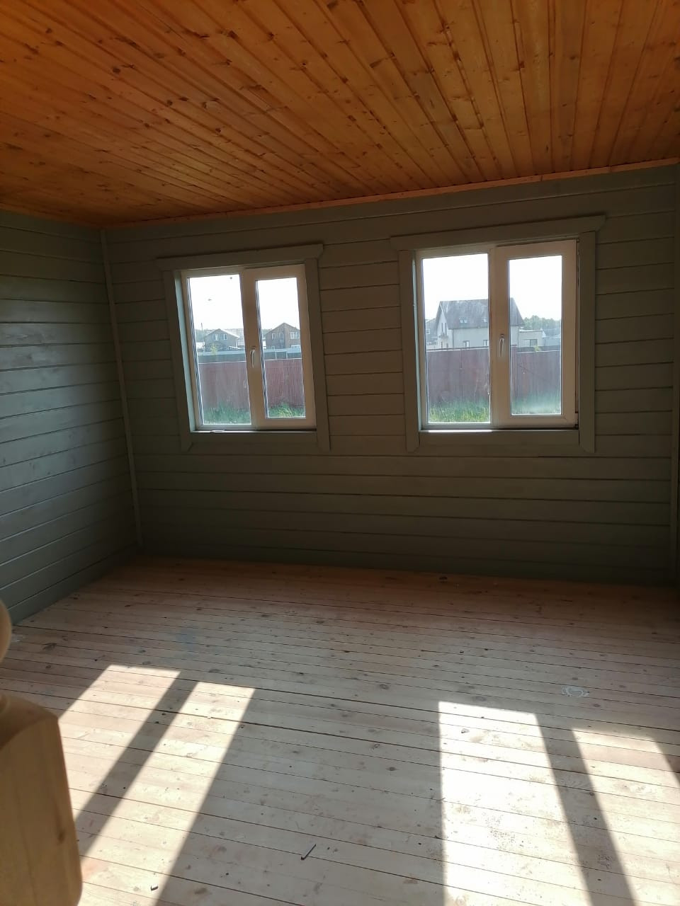 Дом: 1 этаж: Терраса (5,8 м2); прихожая (5,4 м2); с/у (5,4 м2); гостиная (18,4 м2); кухня (10,8 м2), 2 этаж: 2 (две) спальни (по 12,8 м2), прихожая (6,25 м2). Электричество проведено в дом без разводки по комнатам.