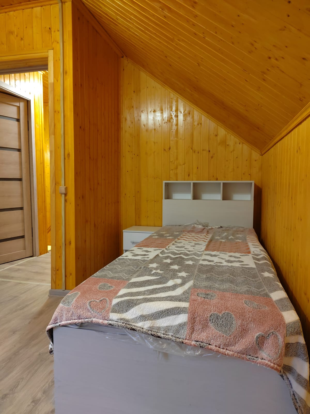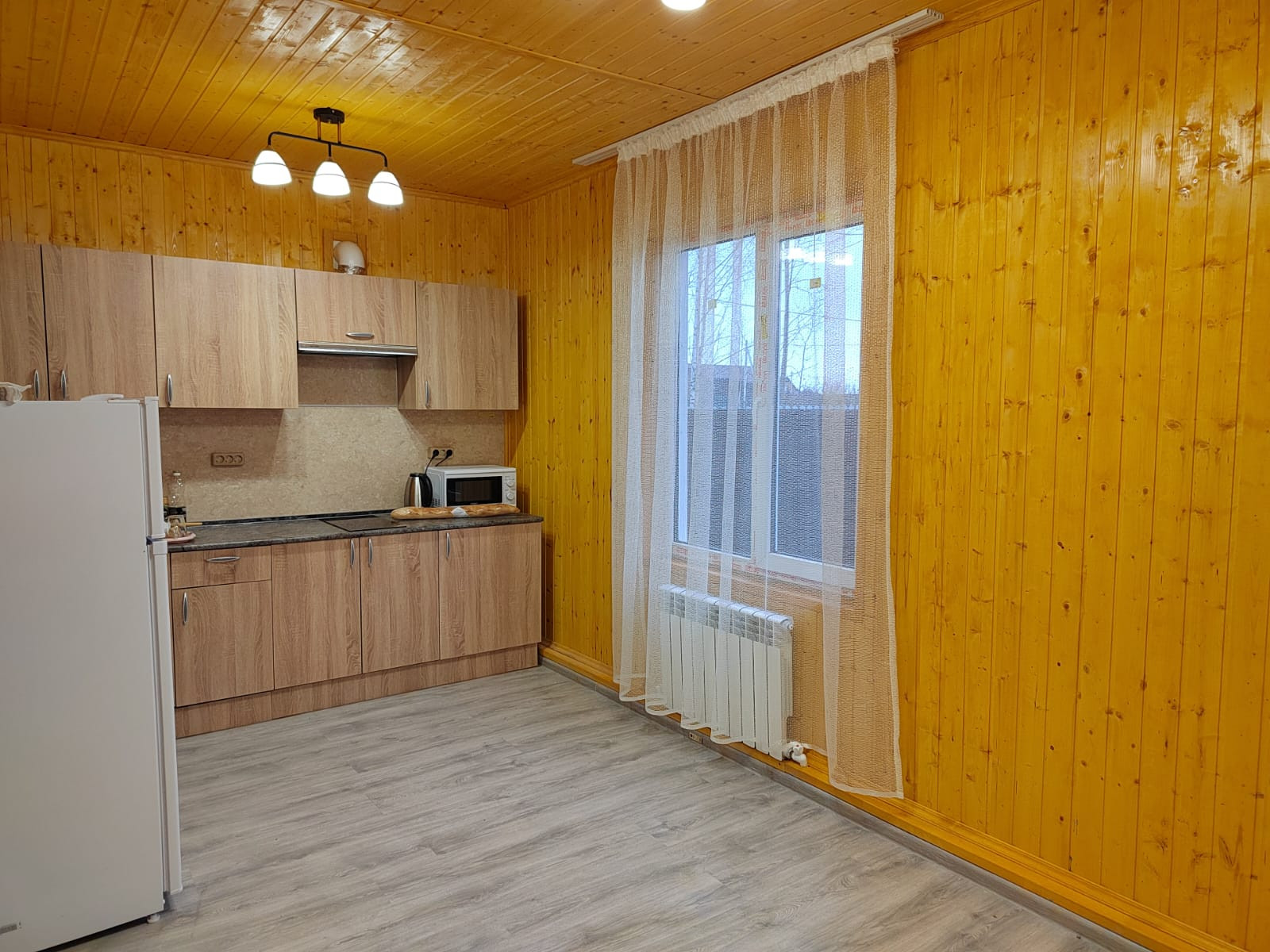 В доме прихожая, кухонная и гостинная зоны, туалетная комната и 3 спальни (на 2 этаже).