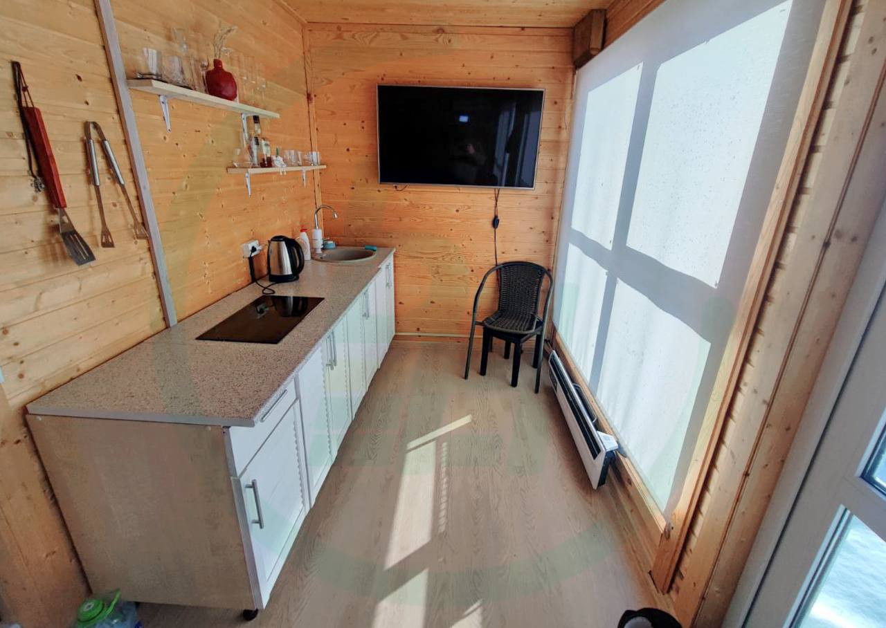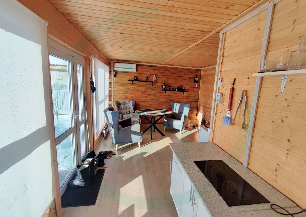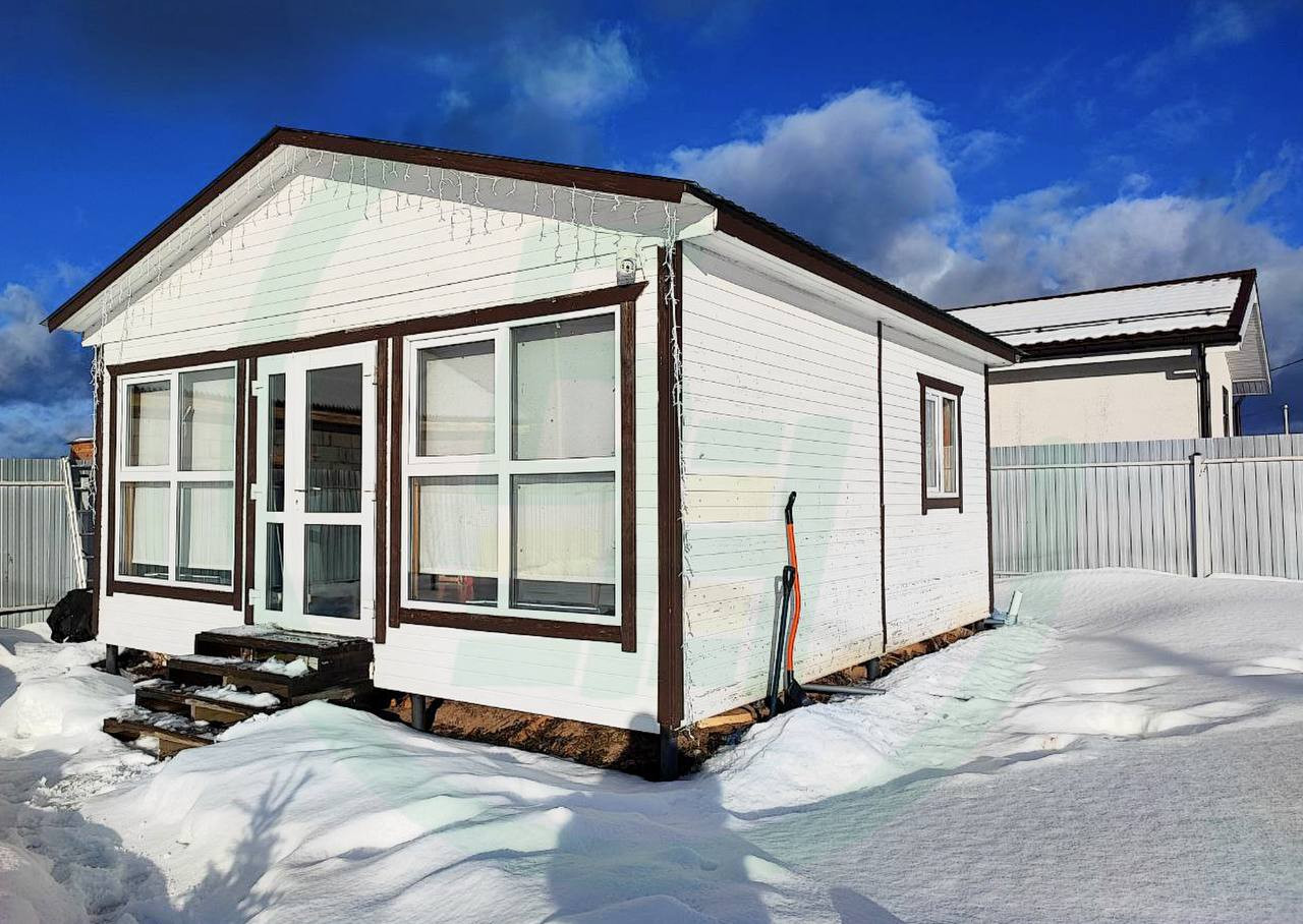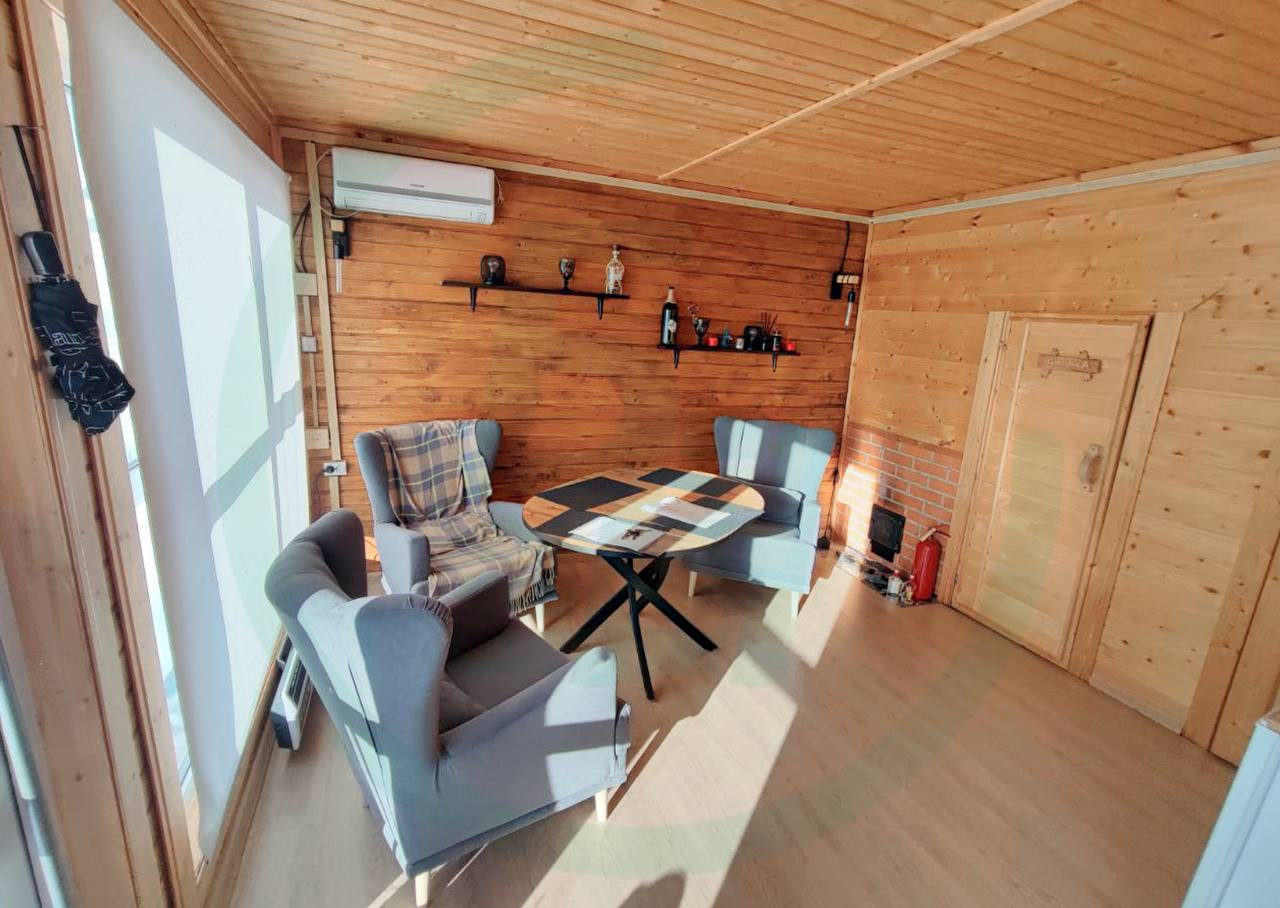 На участке построен отличный одноэтажный дом размером 36 кв.м. Дом стоит на винтовых сваях, имеет кухню-гостиную, комнату, помещение под санузел и ПАРНУЮ. В дом заведены все коммуникации: свет, центральный водопровод, канализация. Установлены панорамные окна ПВХ, кондиционер, металлическая дверь, крыша покрыта металочерепицей. Дом очень теплый, светлый и уютный.