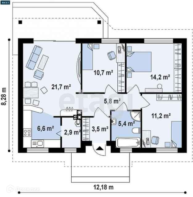 Современный дом из теплой керамики с облицовкой кирпичом, отделка под ключ, разводка + коммуникации. Возможны изменения в конструкции по вашему желанию. Площадь 82 кв.м., цена 6560 тыс.р