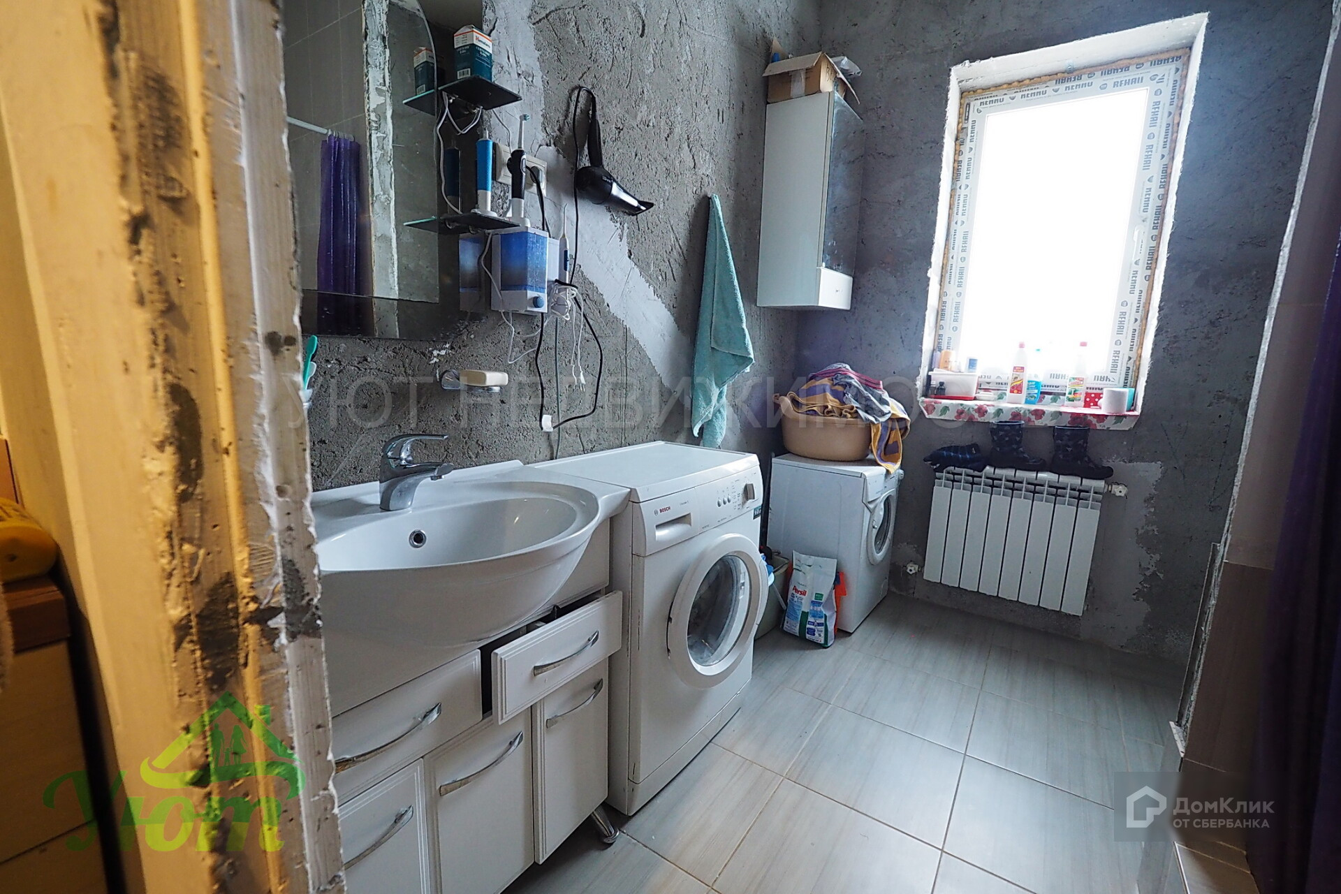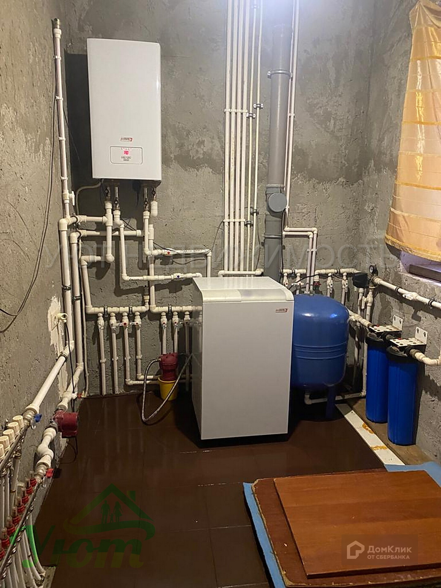 Фундамент дома стоит на бетонной подушке с заглублением 1.5 метра. Стены дома выполнены из пеноблоков и облицовочного кирпича. Между пеноблоками и кирпичом проложена теплоизоляция 50мм. Подвал и первый этаж дома перекрыты ж/б плитами. Первый этаж дома отапливается и подготовлен под чистовую отделку. По всей площади первого этажа "теплый пол".