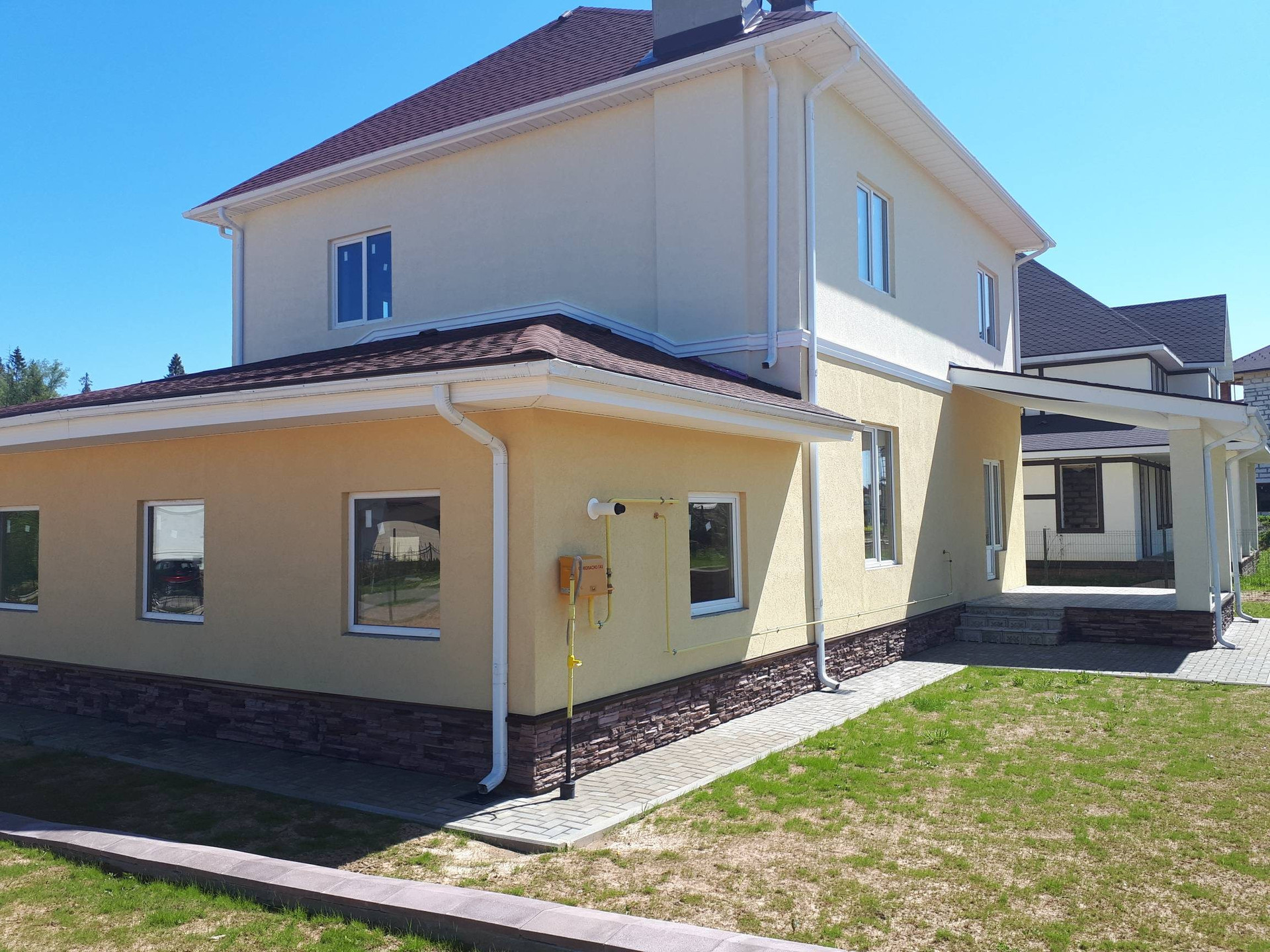 Для полной готовности к проживанию необходимо провести инженерные коммуникации ( центральные ) и сделать чистовую отделку! Коттедж имеет три просторные спальные комнаты, два сан.узла, кухню, столовую и гостиную с выходом на террасу, а также котельную и гараж.