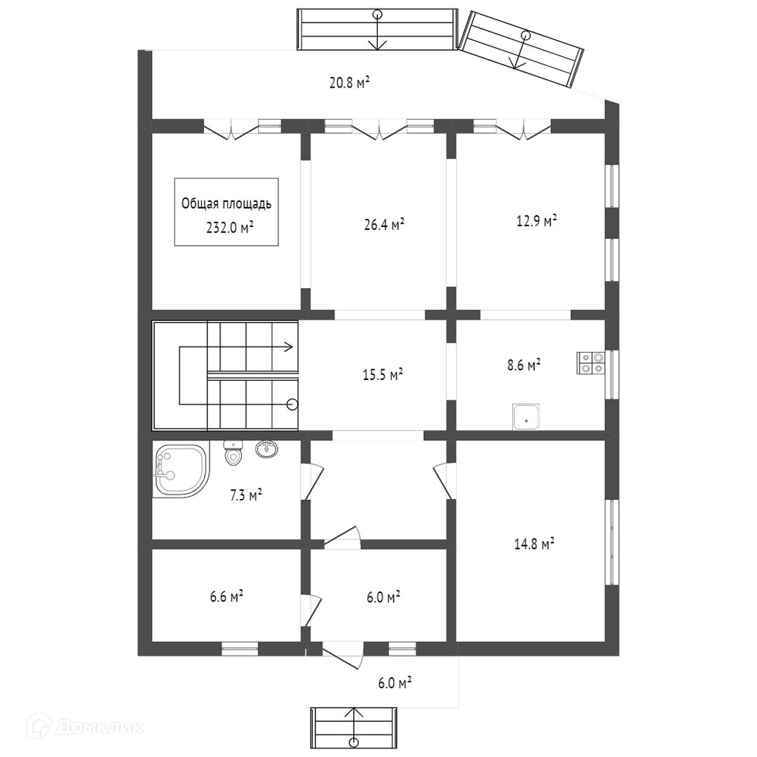 Общая площадь 232 м2