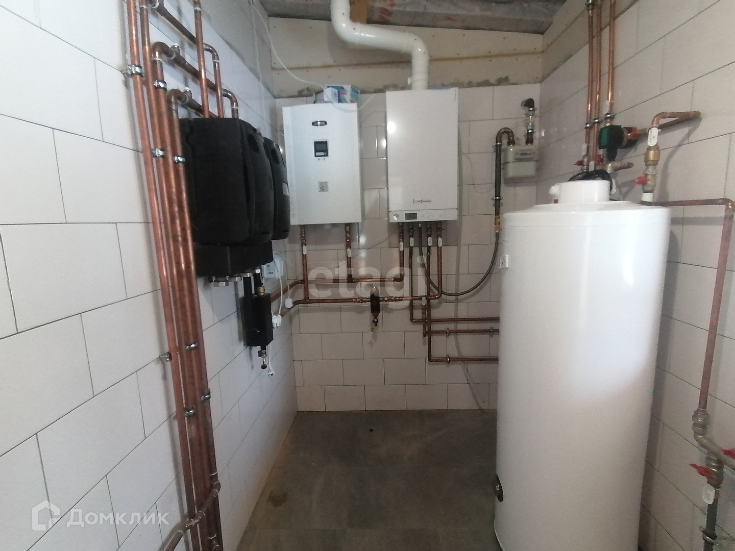 отопление: газовый котёл, водяной пол,