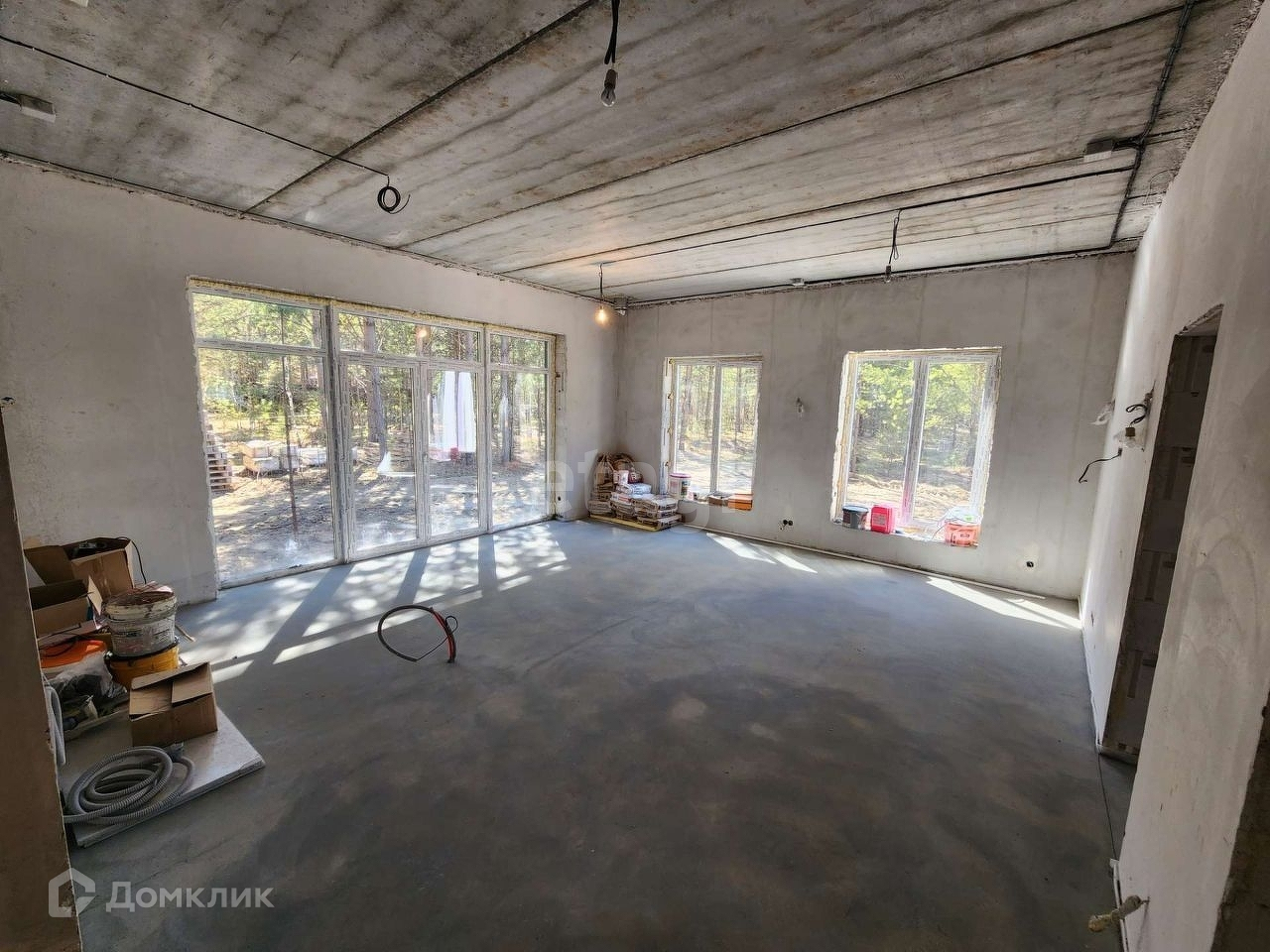 Выполнена разводка электричества, ведутся работы по внутренней штукатурке и благоустройству территории.