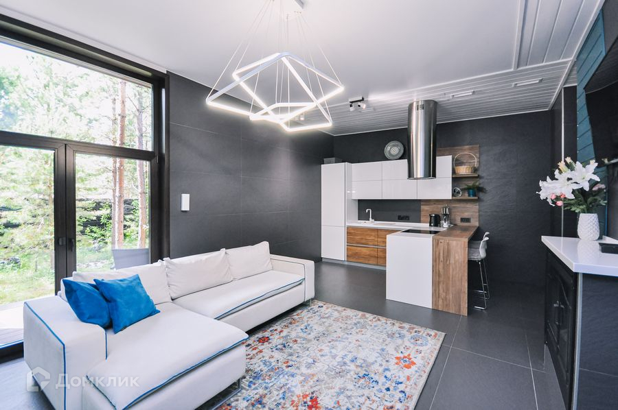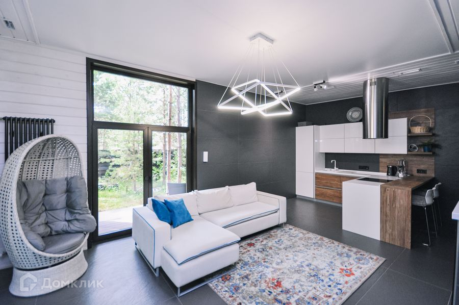 Дом 100 кв. удачно вместивший в себе жаркую баню, бассейн, зону лаундж отдыха и кухню гостиную. Все оборудовано для комфортной жизни и отдыха в лоне природы.