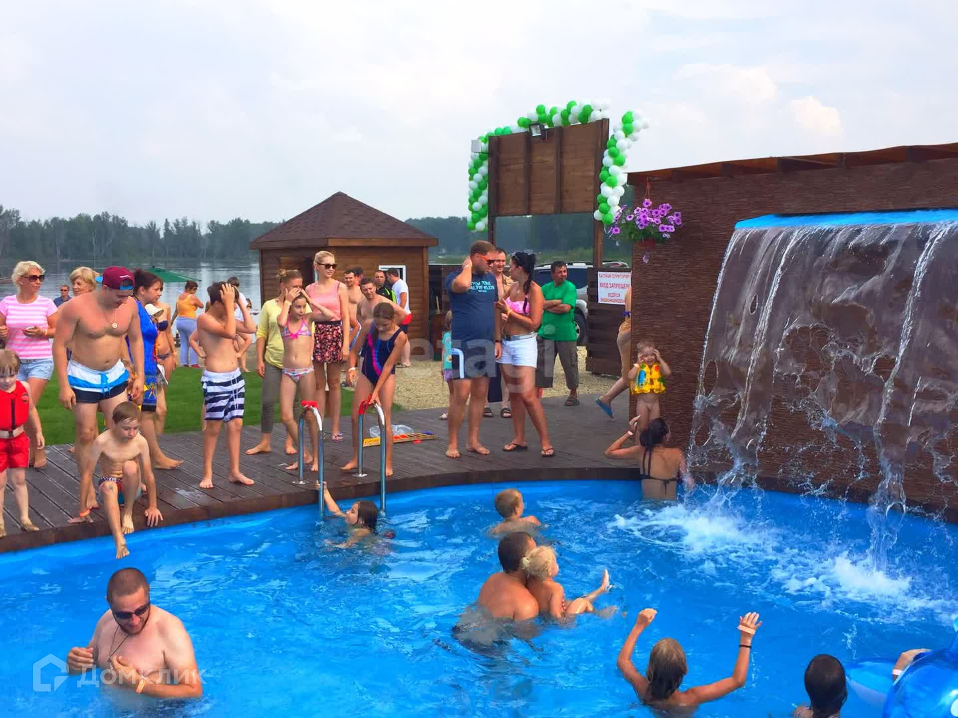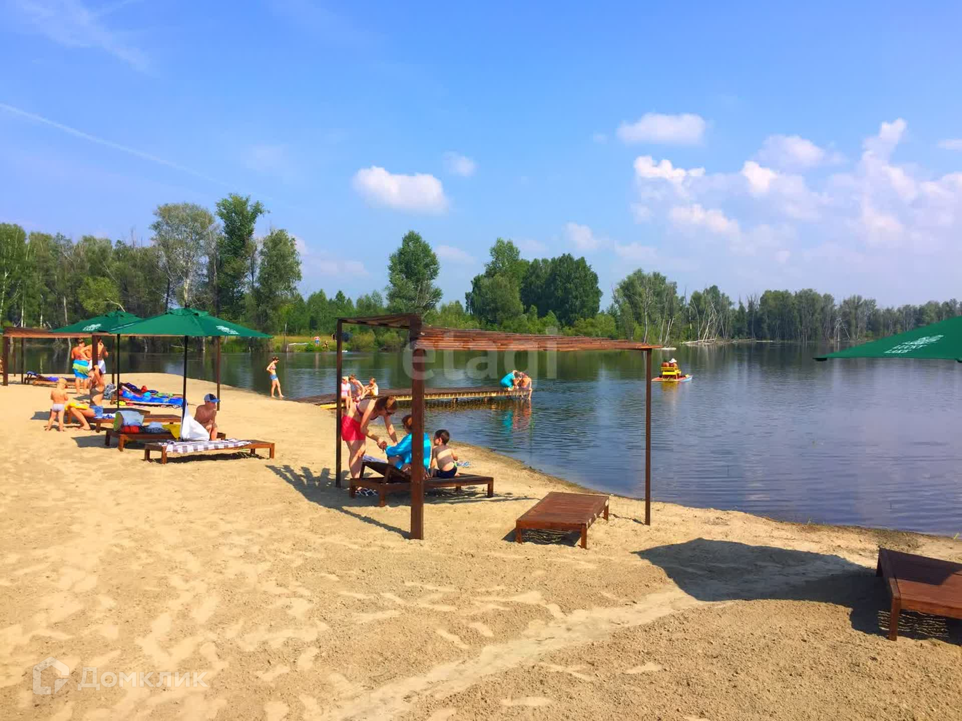 -собственный пляж на озере с бассейнами