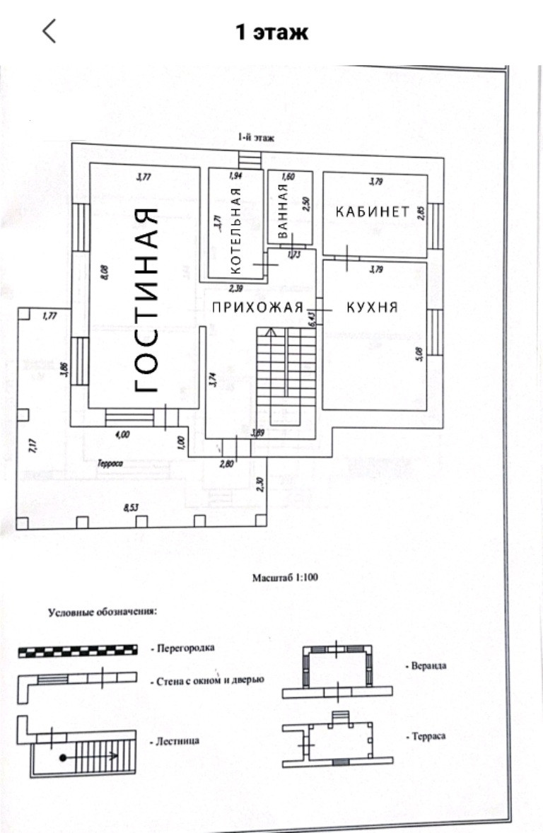 Первый этаж: гостиная, кухня, кабинет, душ - туалет, котельная.