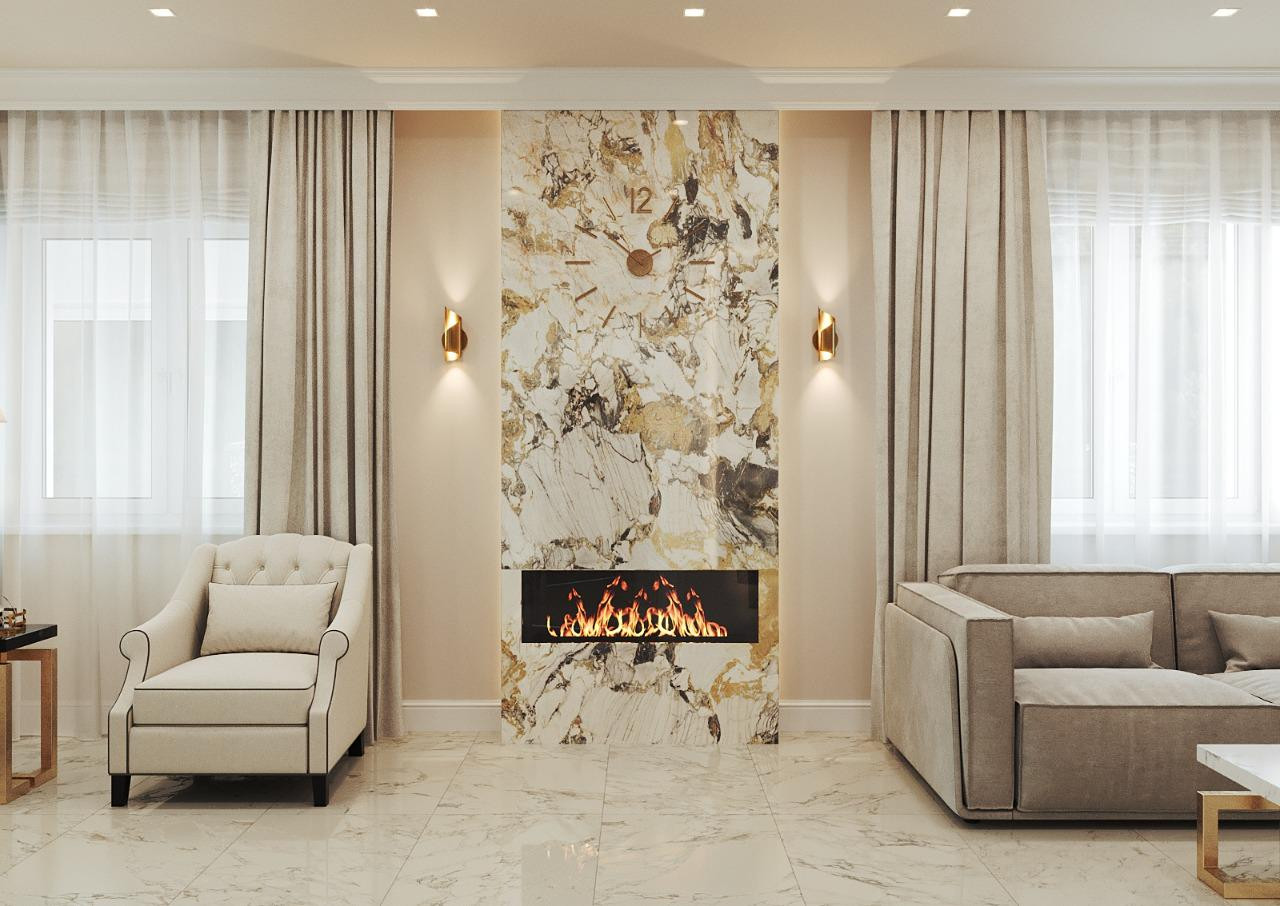 Внутри дома качественная дорогая отделка: мрамор, камень, лепнина. Установлены три кондиционера (гостиная, кабинет, спальня). Мебель качественных и дорогих брендов.