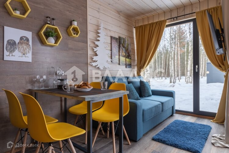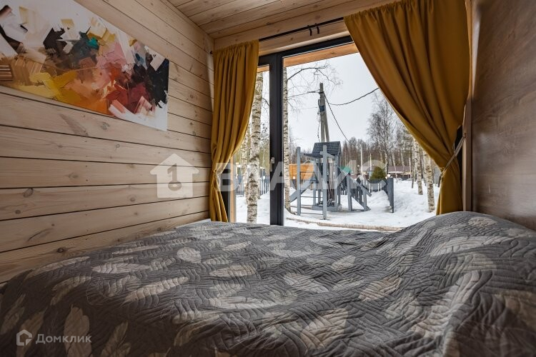 Дом в скандинавском стиле с панорамными окнам и в гостиной и спальне. Терраса. В доме 1 спальня с двуспальной кровать, 1 раскладной двуспальный диван. Есть вся необходимая мебель и техника. Wi-Fi.
