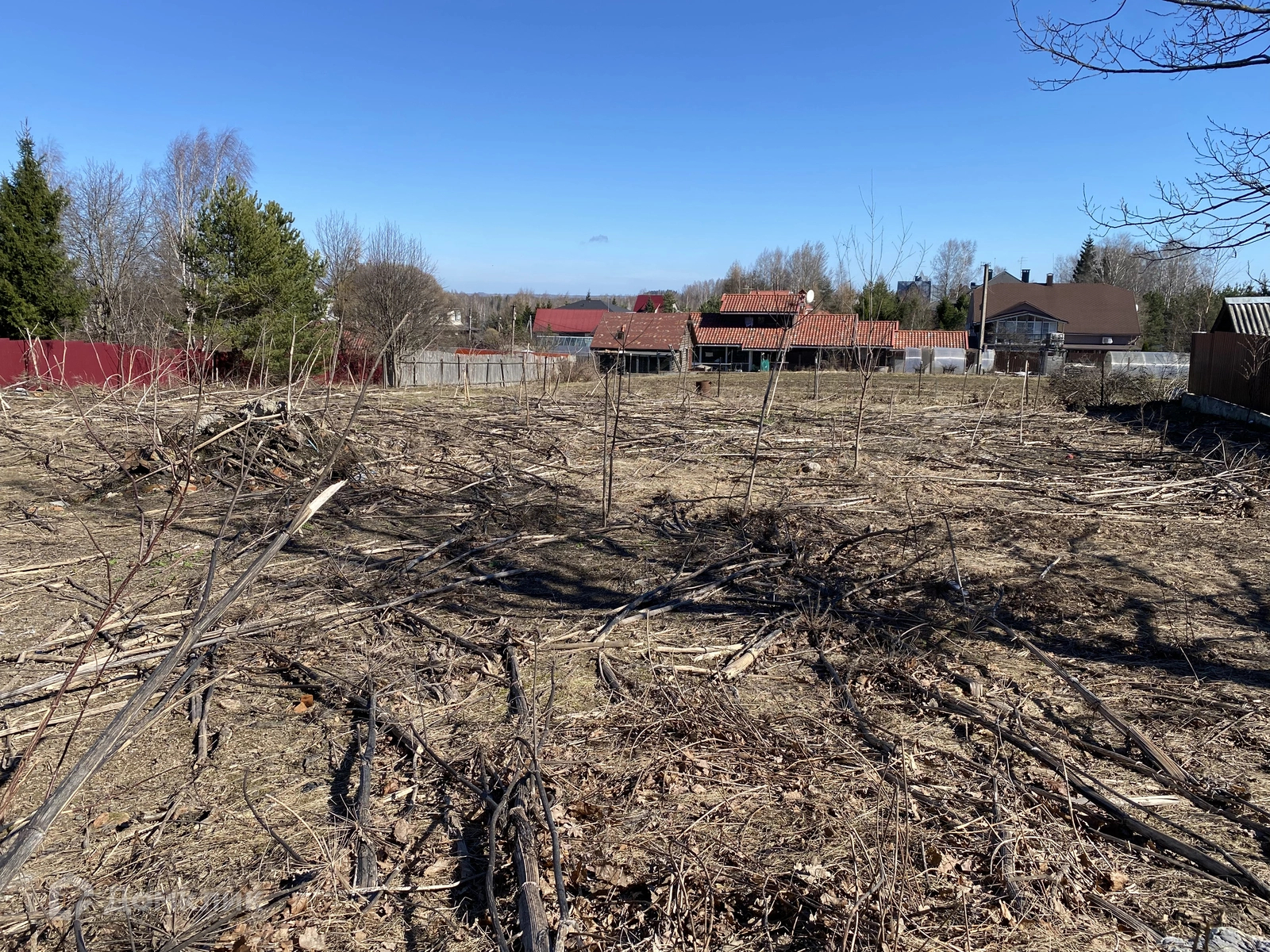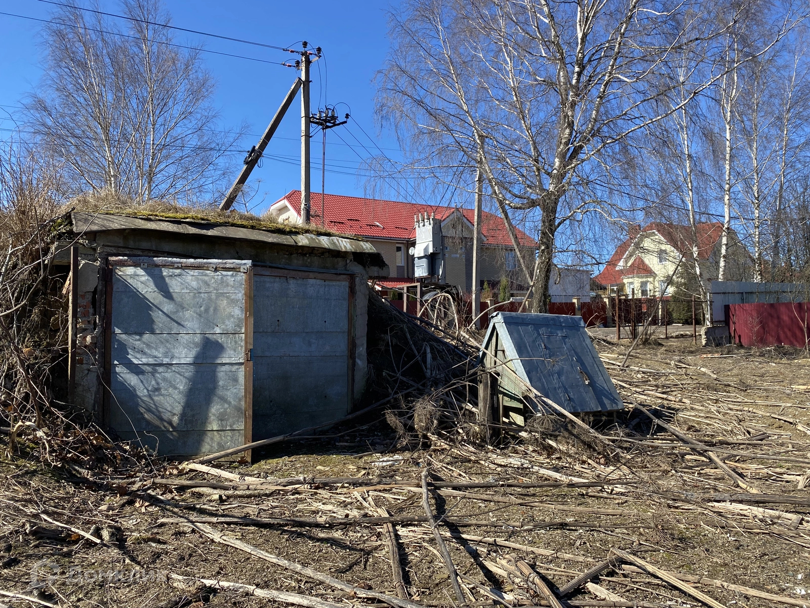 Ровный участок практически правильной формы, на котором сохранились старый погреб и колодец на 15 колец. Межевание произведено, по периметру выставлены металлические столбы для будущего забора. Электрический столб у ворот.