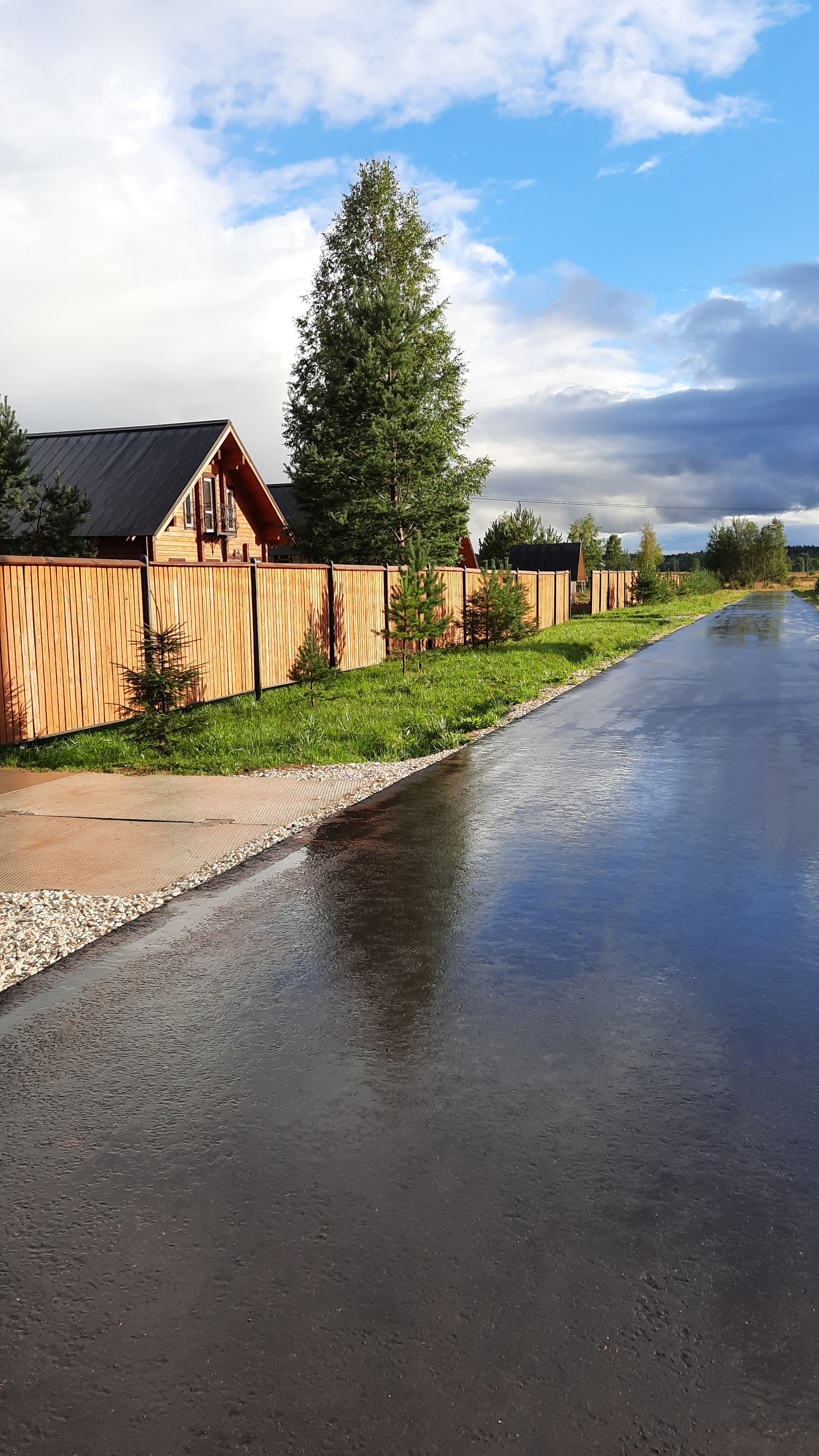 По границе участка, газ, электричество. Дорога асфальт, проложены внутрипоселковые дороги.