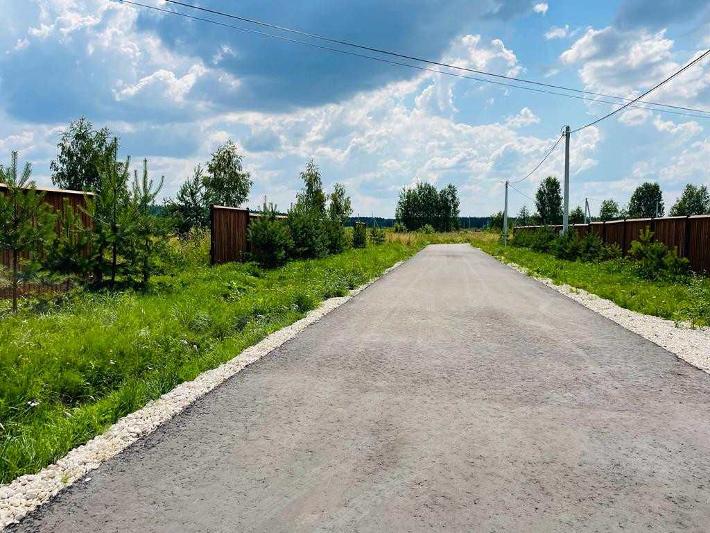 По границе участка, газ, электричество. Дорога асфальт, проложены внутрипоселковые дороги.