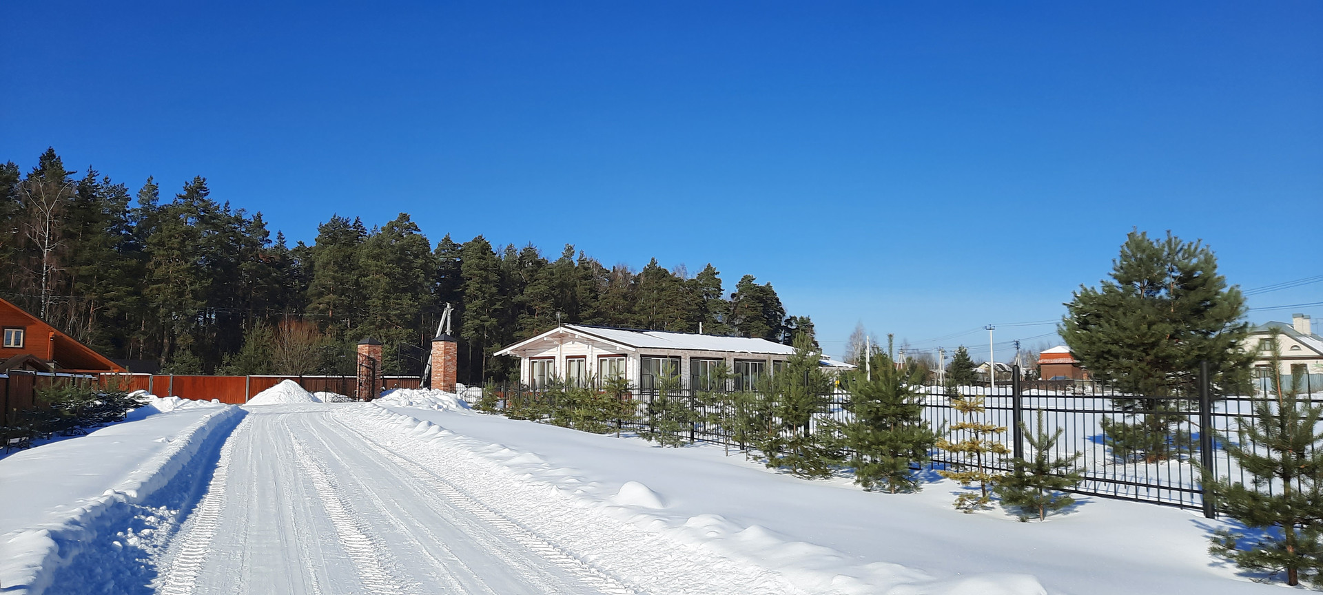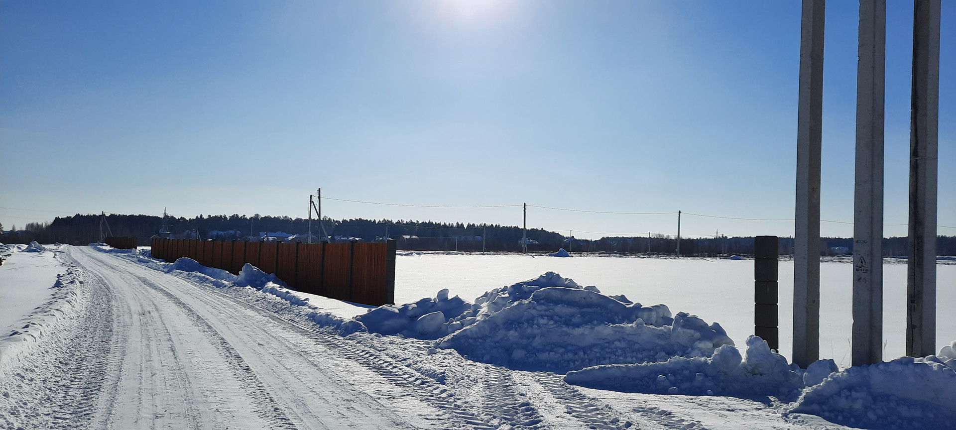 По границе участка, газ, электричество. Дорога асфальт, проложены внутрипоселковые дороги.