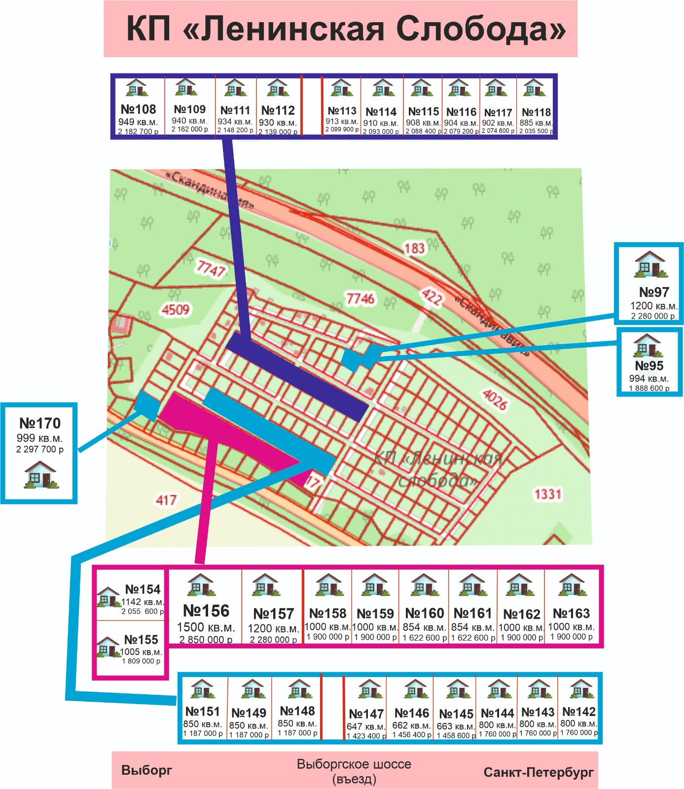 - конфигурацию, площадь, место, цену вы можете выбрать из свободных.