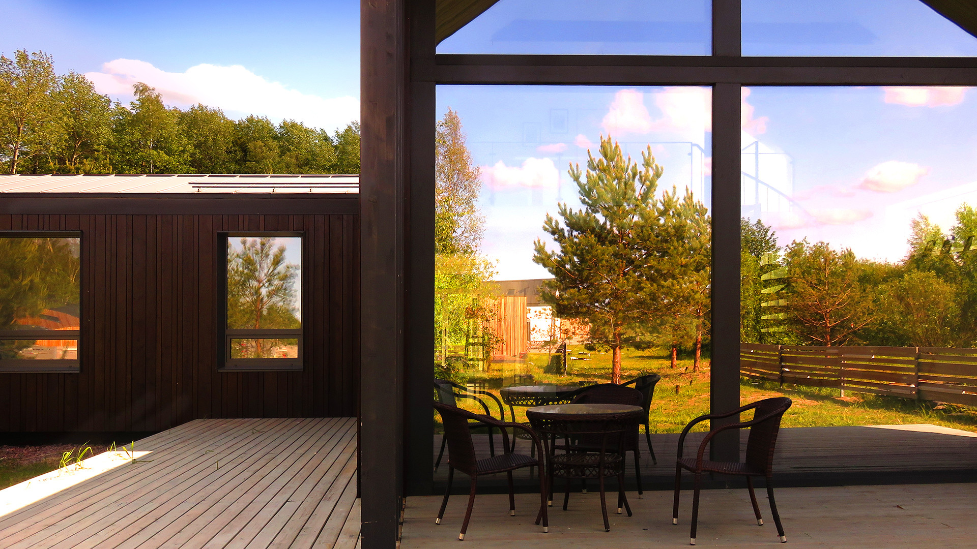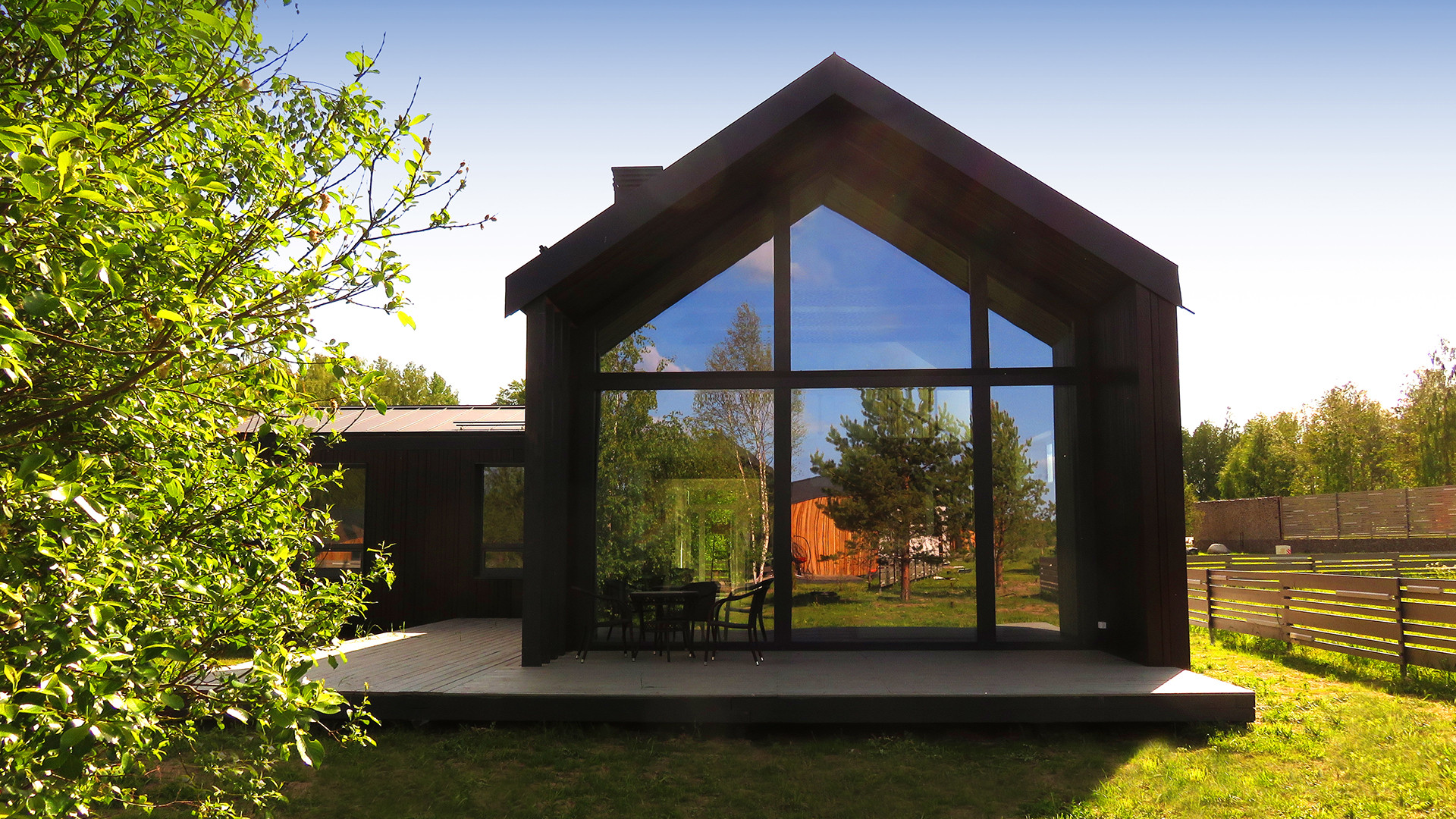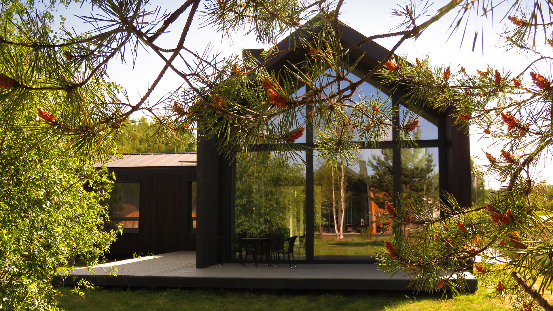 Дом расположен в поселке «Лес и Пляж». Поселок является закрытой территорией с собственной службой охраны и видео-наблюдением, кроме того всегда доступны услуги консьерж-сервиса. Выдержан единый архитектурный стиль Modern Barn House, асфальтированные дороги, собственный парк на территории.