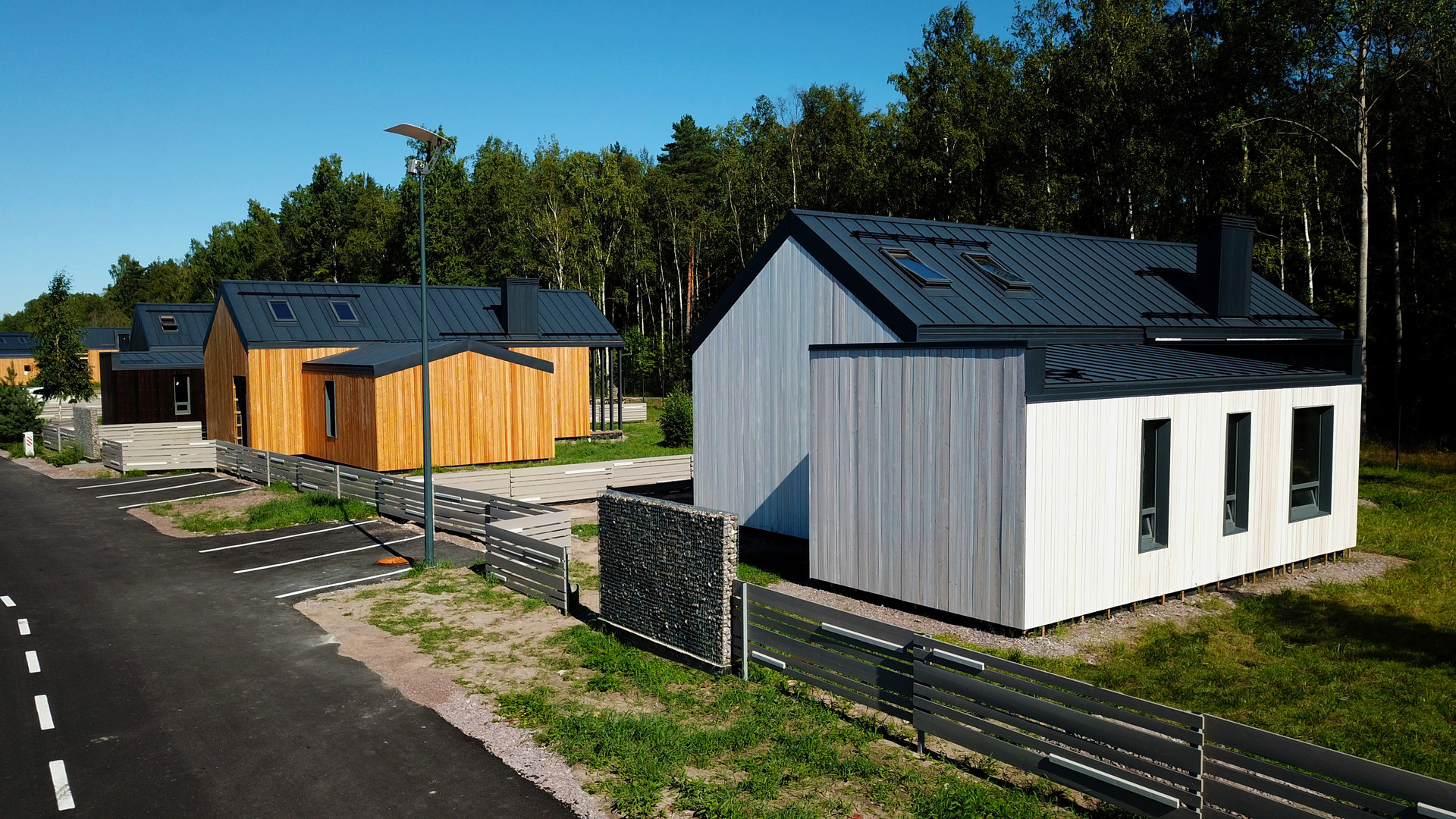 Дом расположен в поселке «Лес и Пляж». Поселок является закрытой территорией с собственной службой охраны и видео-наблюдением, кроме того всегда доступны услуги консьерж-сервиса. Выдержан единый архитектурный стиль Modern Barn House, асфальтированные дороги, собственный парк на территории.
