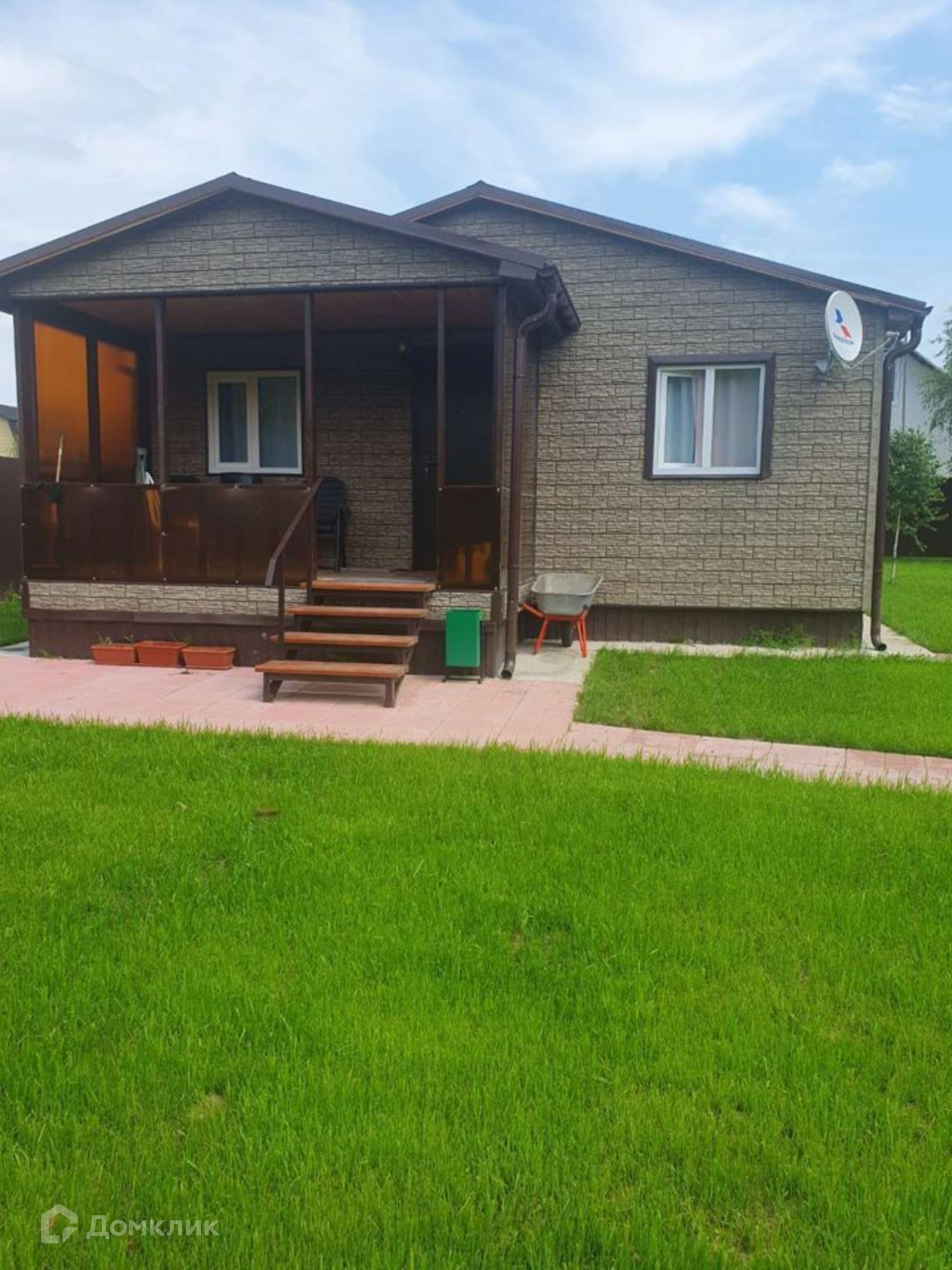 Дом имеет две спальни, коридор, кухню-гостиную, санузел и террасу. Площадь дома составляет 50 квадратных метров. Участок, на котором расположен дом, имеет площадь 6 соток и огорожен забором. Также на участке есть парковка на два автомобиля, бытовка для хранения садовой техники и зона барбекю.