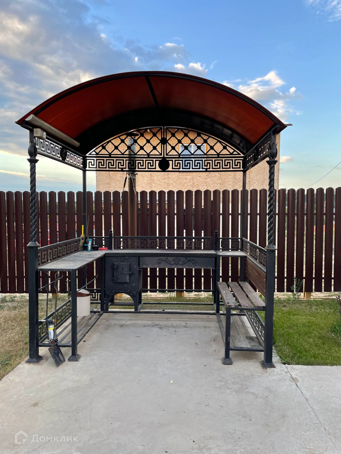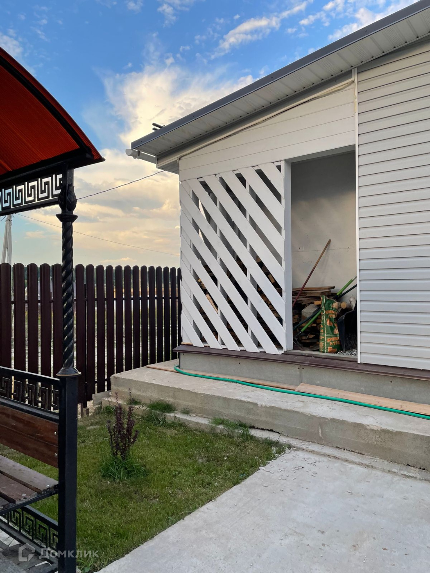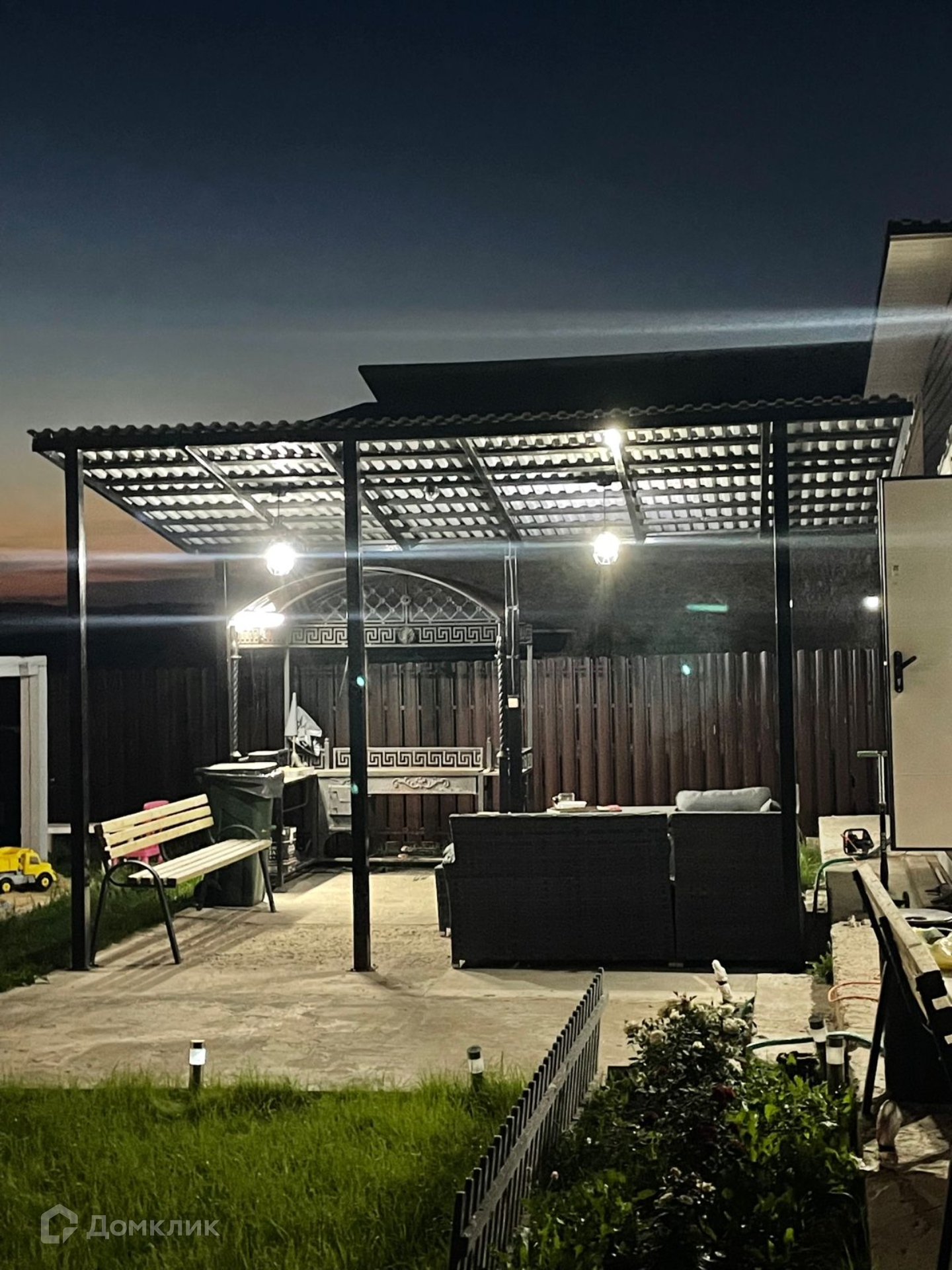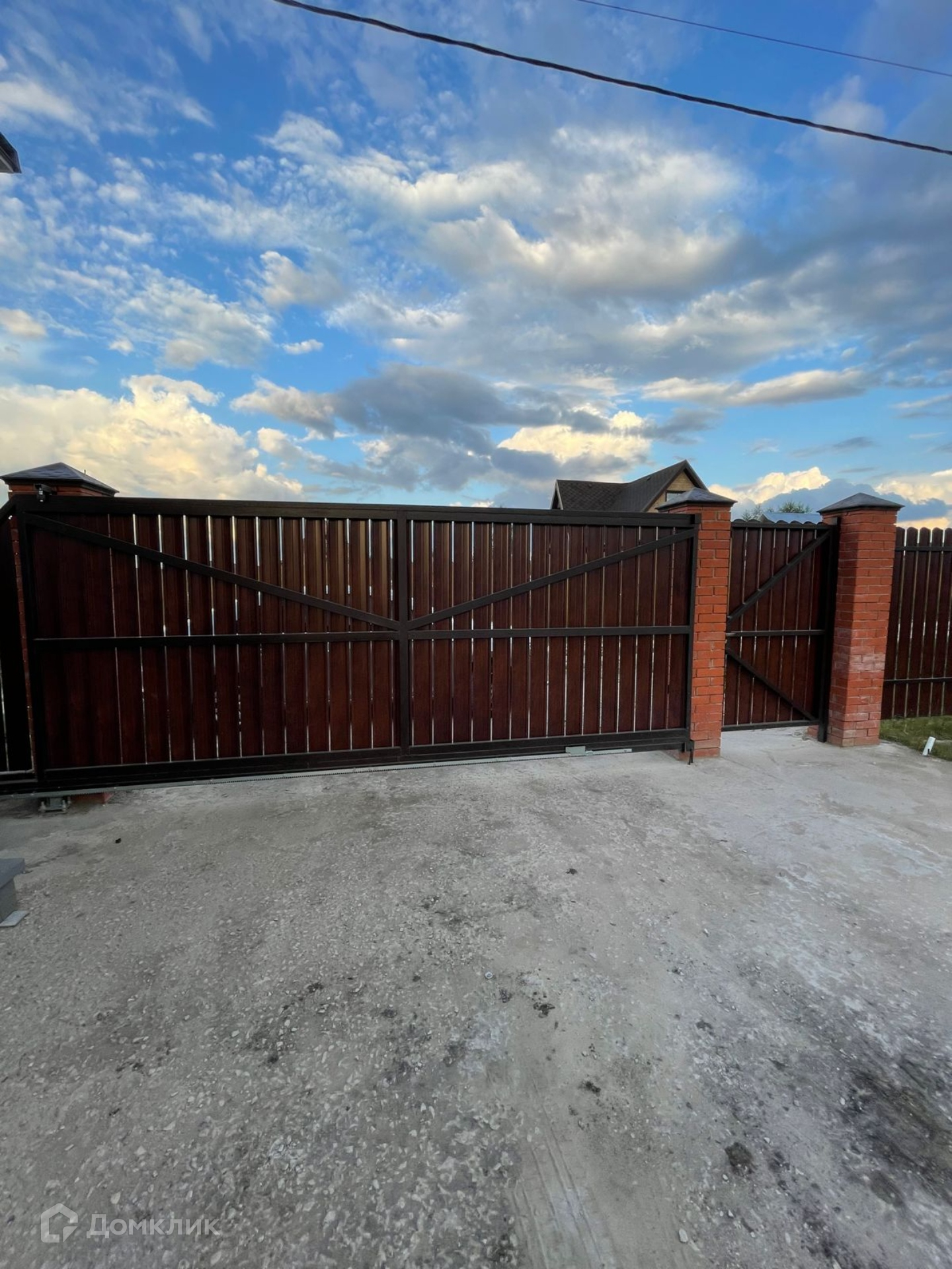 На улице подведена проводка для уличного освещения. Участок огорожен забором, ворота электрические откатные.