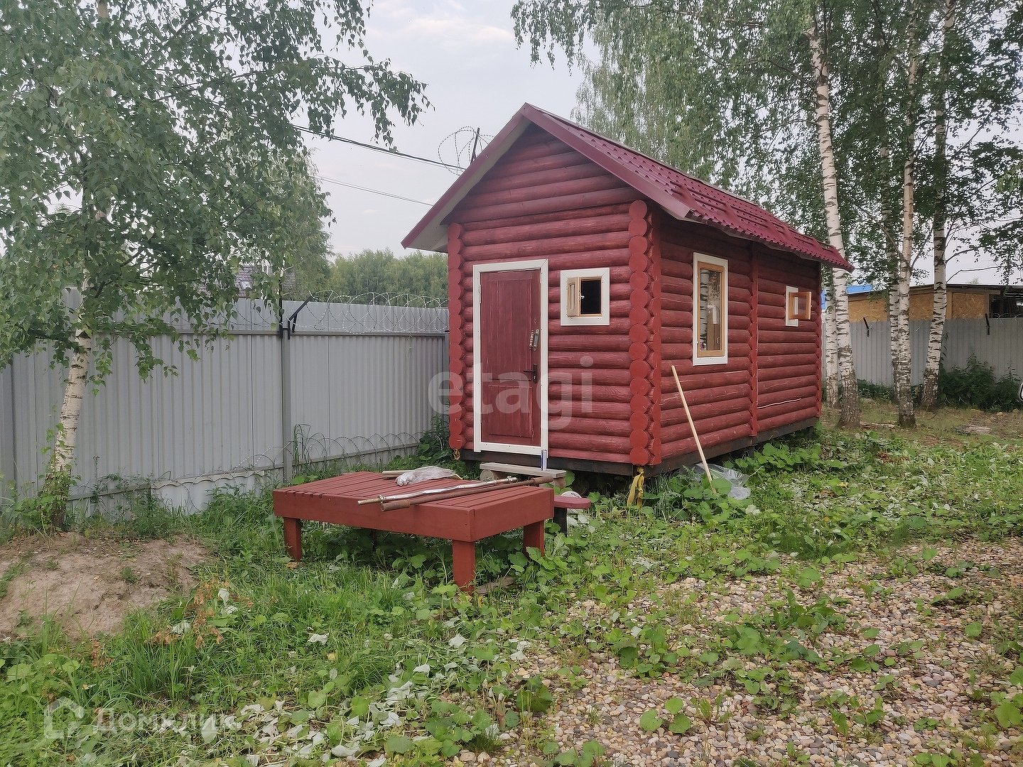 Участок 10 соток ровный, прямоугольной формы. Огорожен профлистом. На участке гостевой домик 7х3, утеплен, два крыльца, двери, стеклопакеты. Бревенчатая баня 6х3 c центральными водоснабжением и канализацией, построена из сухого бревна, отделка внутри - липа, за 45 минут нагревается до 90 град.