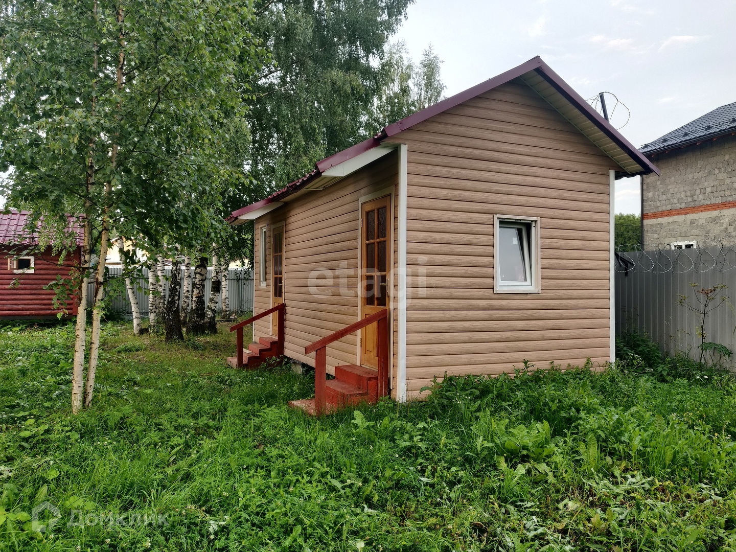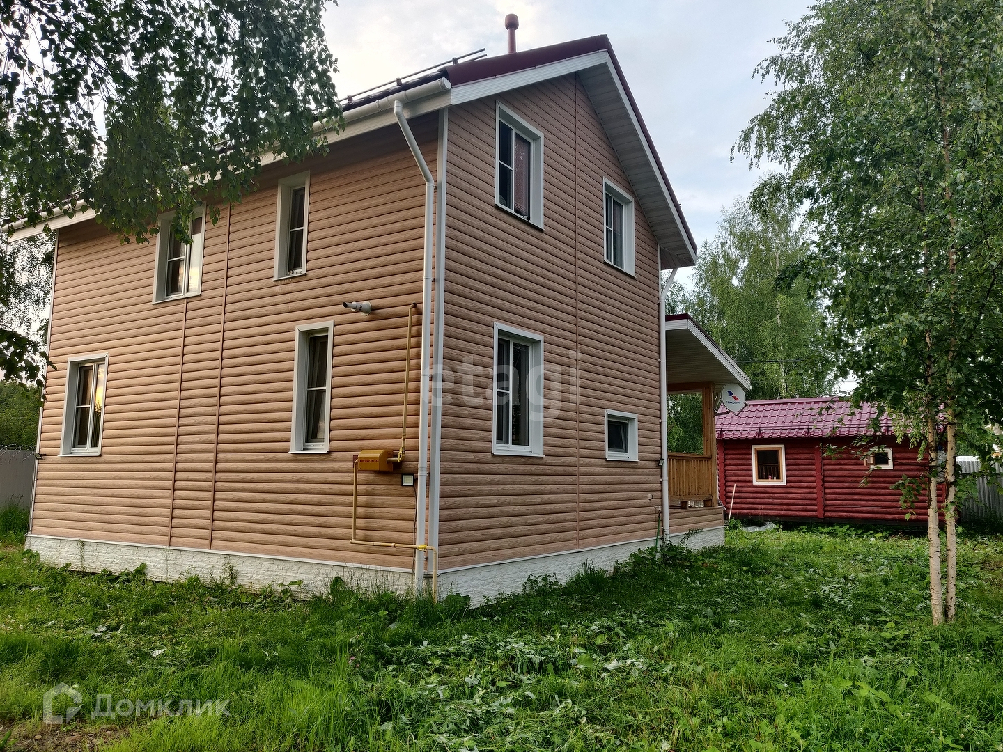Дом каркасный, для круглогодичного проживания. Построен по шведской технологии, утеплен, рассчитан на суровые морозы, качественные дорогие материалы и оборудование. Утепление хард-рок без химии, каркас усиленный. Внешняя отделка дома и других строений в едином стиле, цвет рябины. Газонная трава, участок ровный, обработан.