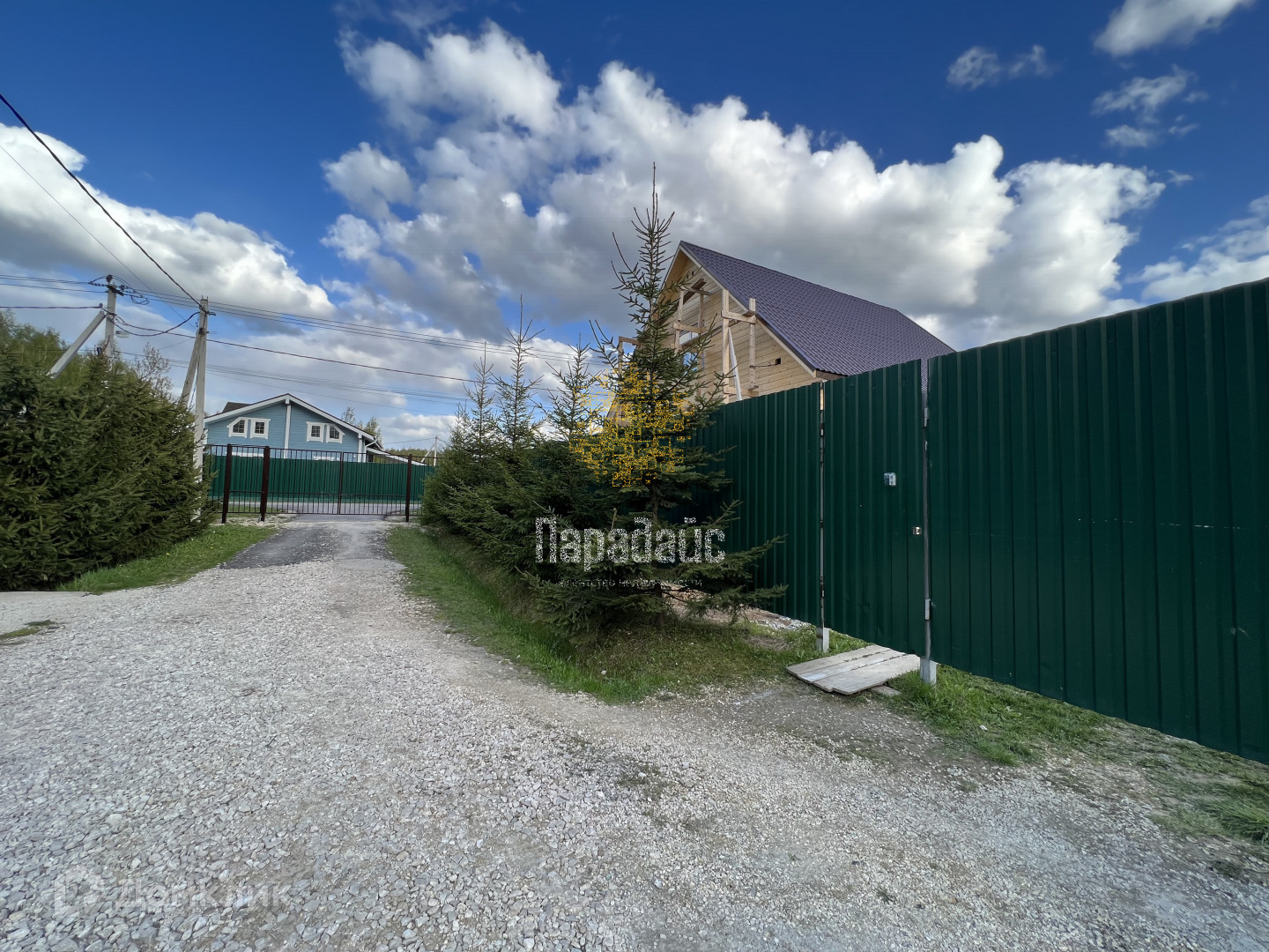 Участок ровный, 7,03 сотки, угловой (соседи с двух сторон), имеются въездные ворота, площадка для парковки автомобиля на участке. На участке высажены ели, малина, деревья. Подъезд к дому с участком прекрасный, соседи тихие, живут круглогодично, установлены ворота с кнопки в проулок для подъезда к участку. Материалы остаются в подарок, в том числе и ламинат.